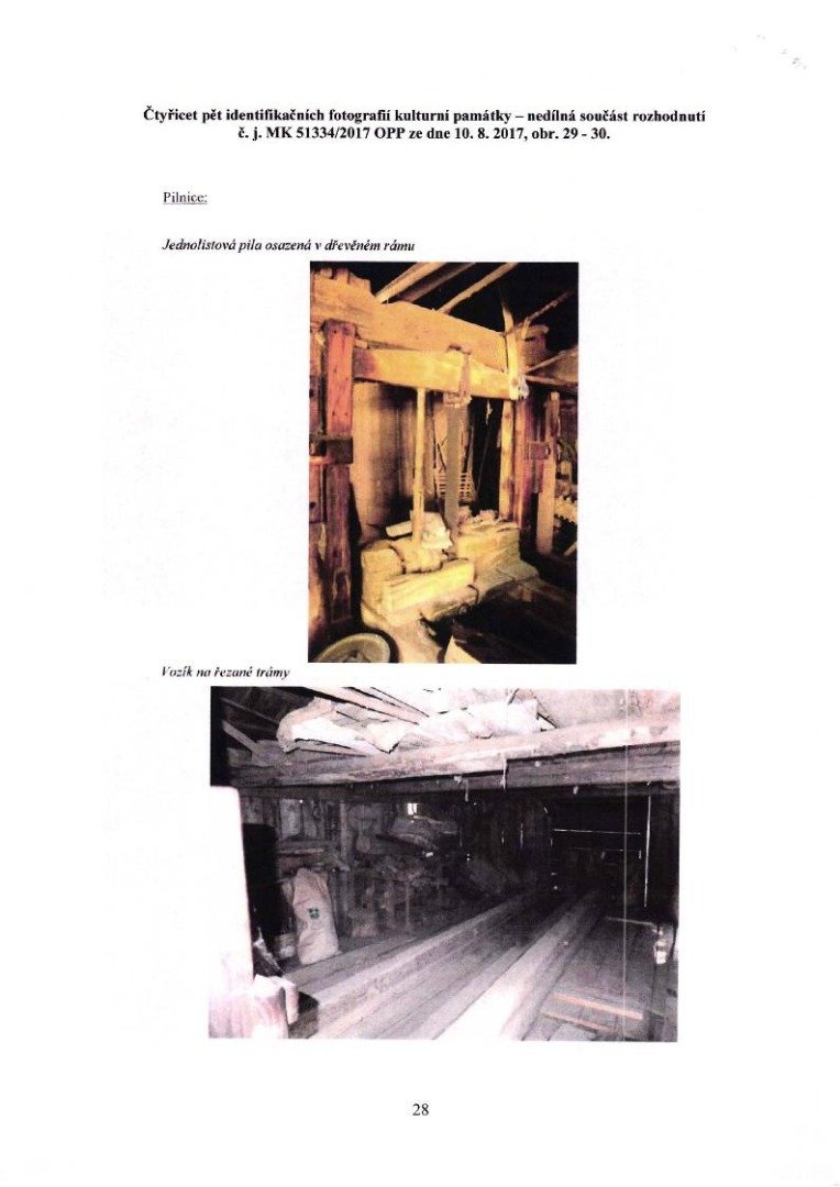 Ačkoliv pilířová stodola nebyla navržena a doporučena k prohlášení za kulturní památku, podotýkáme, že svým stavebním charakterem významným způsobem dotváří celkovou atmosféru dotčeného areálu, potažmo příslušného památkově chráněného pozemku st. p. č. 24/1, k. ú. Lidmaňka. Exteriér mlýnice s pilou je v současnosti sice částečně narušen novodobými stavebními zásahy, tyto úpravy jsou ovšem odstranitelné a v souladu s principy památkové péče rehabilitovatelné dle obdobných příkladů a řešení vycházejících z prostředí tradičního lidového stavitelství. Patrová obytná část č. p. 28 s dřevěnou pavlačí směrem do dvora, pocházející patrně z přelomu 30. a 40. let 20. století, netvoří památkovou podstatu kulturní památky, nicméně je její neoddělitelnou stavební součástí. Zpurizovaným dojmem vyhlížející fasáda a nečleněný novodobý tvar dřevěných okenních výplní je pravděpodobně dílem pozdějších modernizačních úprav ze 70. nebo 80. let 20. století, které působí nejen v kontextu historické podoby mlýnice, pily a stodoly značně rušivě a cizorodě. Z těchto důvodů by si obytná část č. p. 28 v budoucnu zasloužila památkově citlivou revitalizaci.