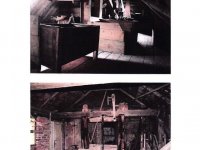 - transmisní hřídel s dřevěnými řemenicemi a s jednou litinovou řemenicí