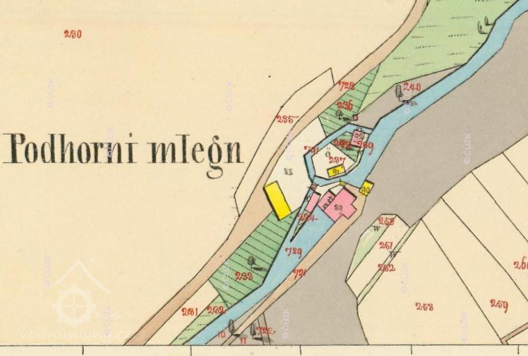 1737 Jakub Oulík koupil za 1000 zl. mlýn Podhorní o třech složeních, k tomuto mlýnu byly příslušny vsi Spyta, Nahořany, Dolsko, Černčice, Vršovka a sedm sedláků z Bohuslavic