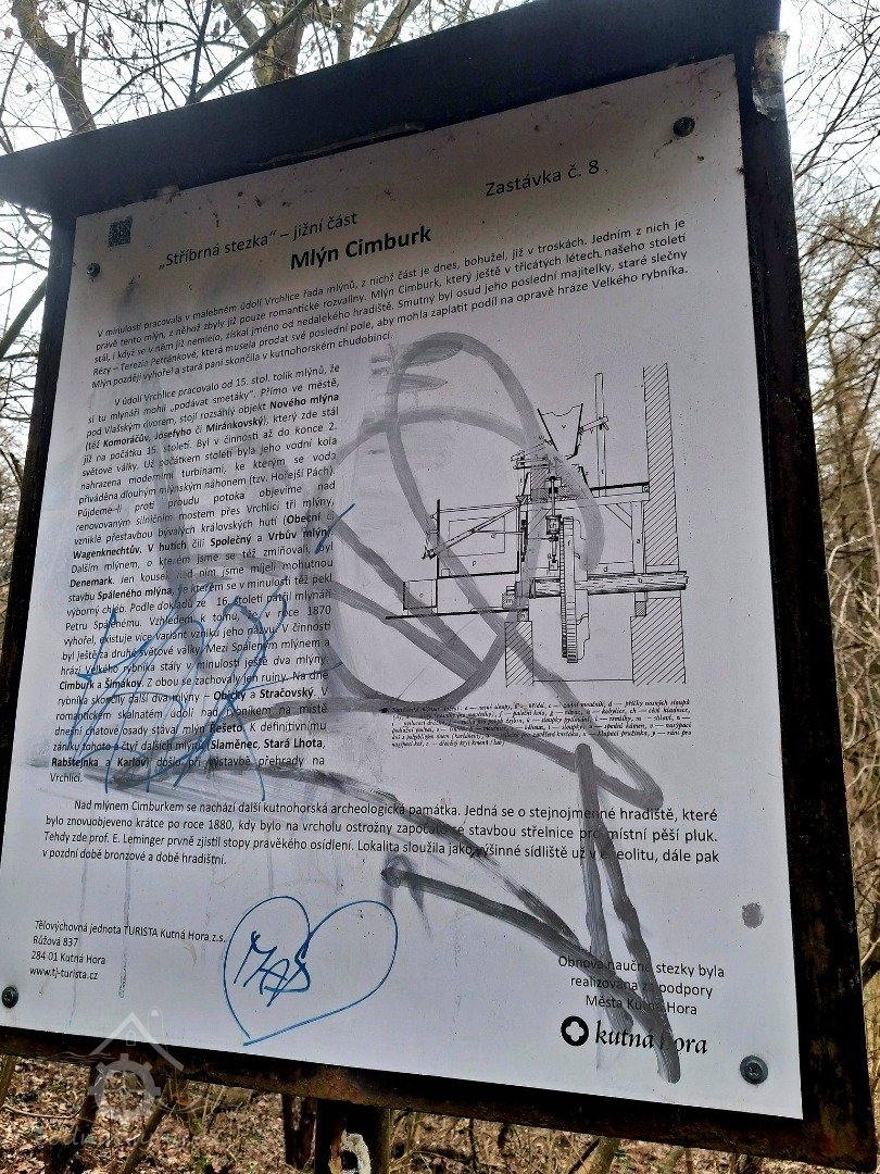 Mlýn Cimburk stál ještě v třicátých letech minulého století. Své jméno získal od názvu nedalekého hradiště. V první třetině 20. století byl mlýn ještě obydlen, i když se v něm nemlelo. Říkalo se mu Starý český klepáč. Poslední majitelka "slečna Réza"- Terezie Petránková musela prodat své poslední pole, aby mohla zaplatit podíl na opravě hráze Velkého rybníka. Mlýn později vyhořel a majitelka skončila bez majetku v Nadačním domě kutnohorských měšťanů (kutnohorském chudobinci). Ve 30. letech minulého století mlýn vyhořel.