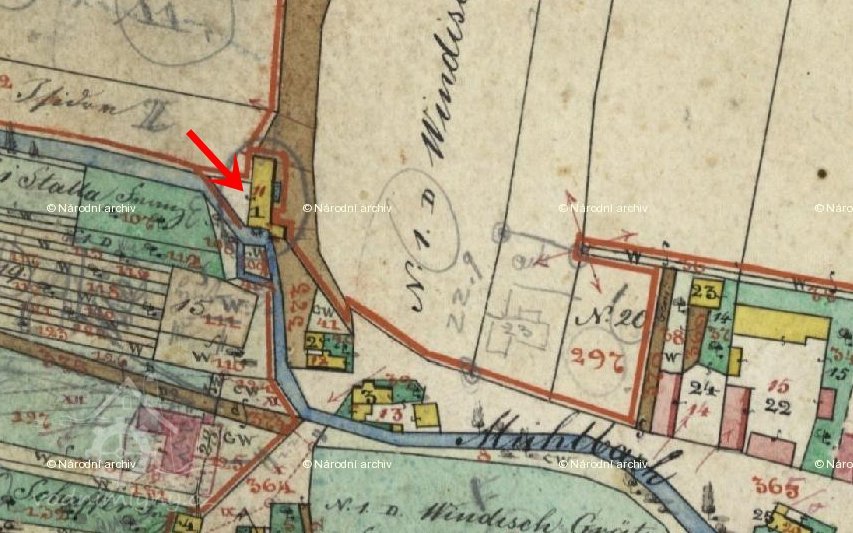 Z údajů Indikační skici Stabilního katastru z roku 1843 vyplývá, že mlýn patřil k majetku Windischgrätzů, kteří od roku 1838 vlastnili vintířovské panství.
