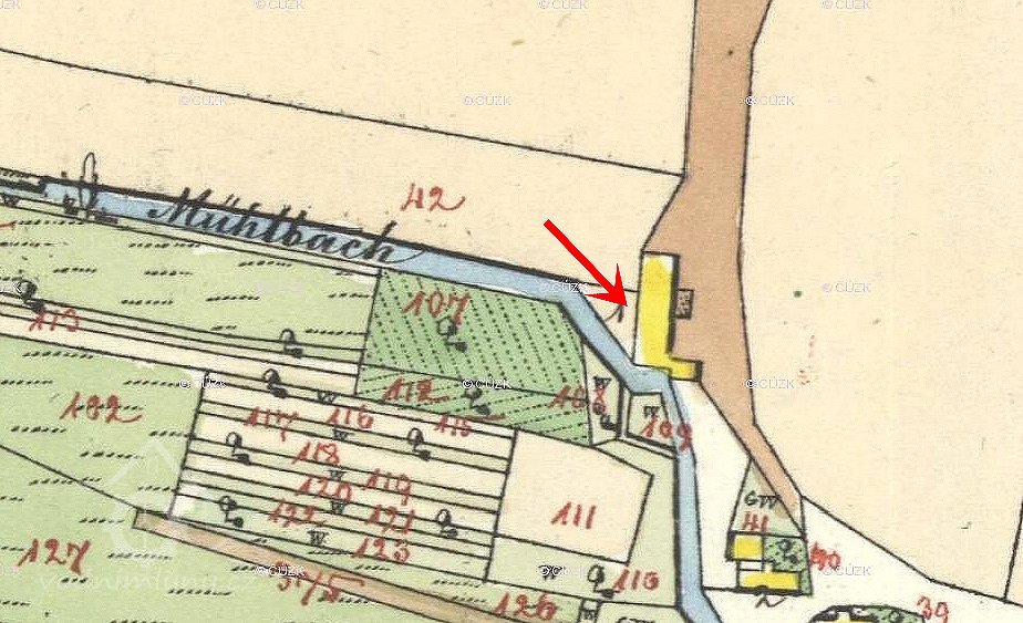 PopisV roce 1930 zde byla 2 vodní kola na vrchní vodu o hltnosti 85 a 90 l/s, na spádu 3,6 m a výkonu 2,67 a 2,83 HP.