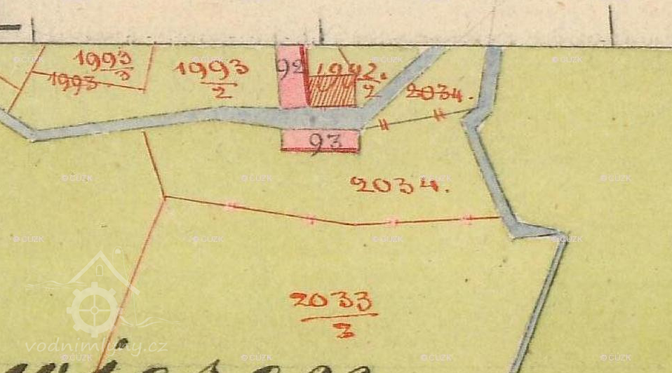 Mlýn je zakreslen již na mapě I. voj. mapování.