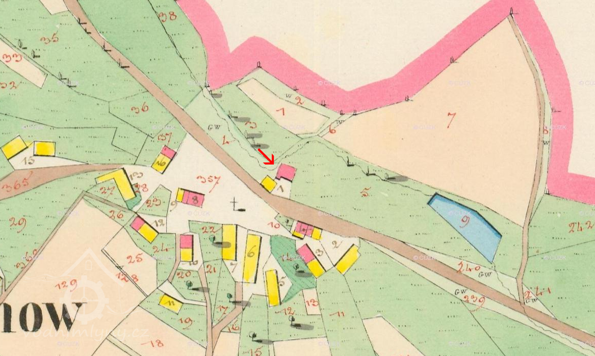 PopisV roce 1930 mlýn pohánělo 1 kolo na svrchní vodu, průtok 0.092 m3/s, spád 5 m, výkon 4 HP