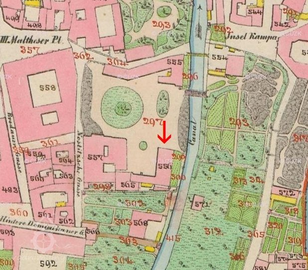 1762 koupil František Václav hrabě Nostic, 1765-66 dům přestavěl a nechal zde zřídit prádelnu, přenesenou z čp. 470-III.