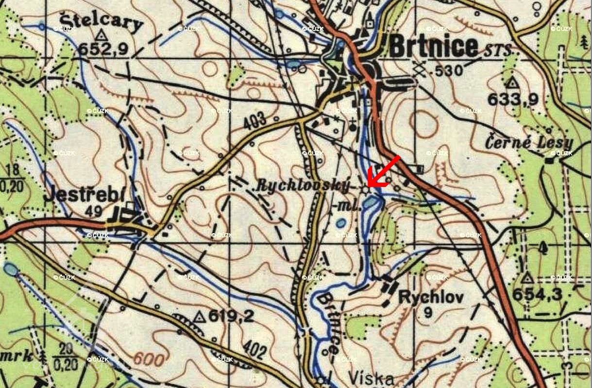 Mlýn se nachází na jih od Brtnice směrem k Rychlovu.