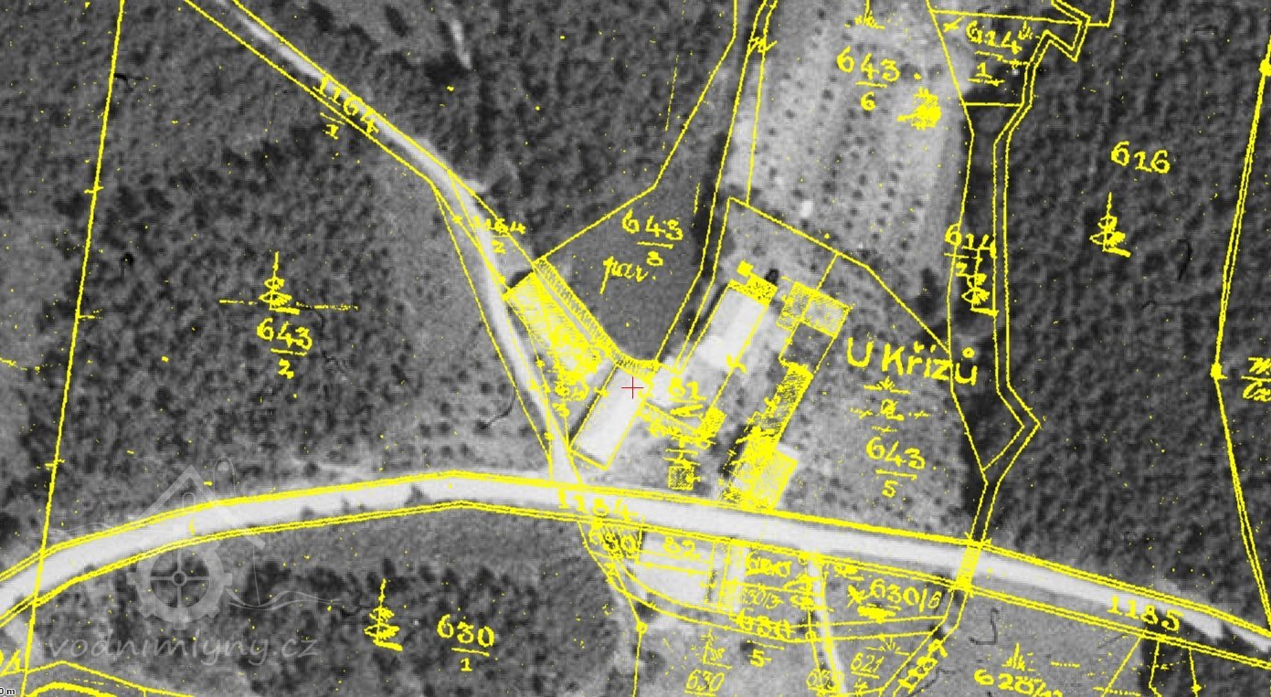 V Protokolu uloženém ve vložce p.č. 62 Vodní knihy I OÚ v Táboře z 29.7.1884 se uvádí: "Voda se přivádí na vodní v průměru 7,80 m měřící a 0.79 m široké kolo z rybníka čili z rozšířené mlýnské struhy č.parc.643/1 rourou do kádě a z toho padá na kolo, kteréž jak mlýn tak vývěvu pohání. Z rybníka pouští se voda rourou 0,40 m vysokou a 0,47 m širokou, která se ve východní části rybniční kádě nalézá. V této části rybníka umístěno jest jedno stavidlo 0,585 m vysoké a 1,00 m široké do jalového potoka, který se pak s Černovickým potokem spojuje. Normální znamení bylo dne 29.7.1884 zasazeno."