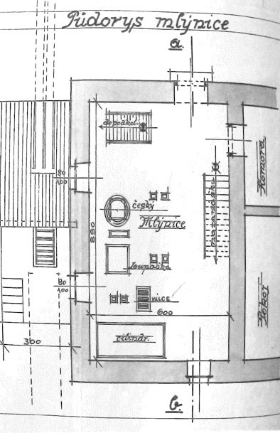 ve mlýnici válcová stolice Seck, loupačka a české složení z pískovcových kamenů o prům. 0,8 m