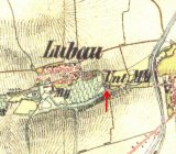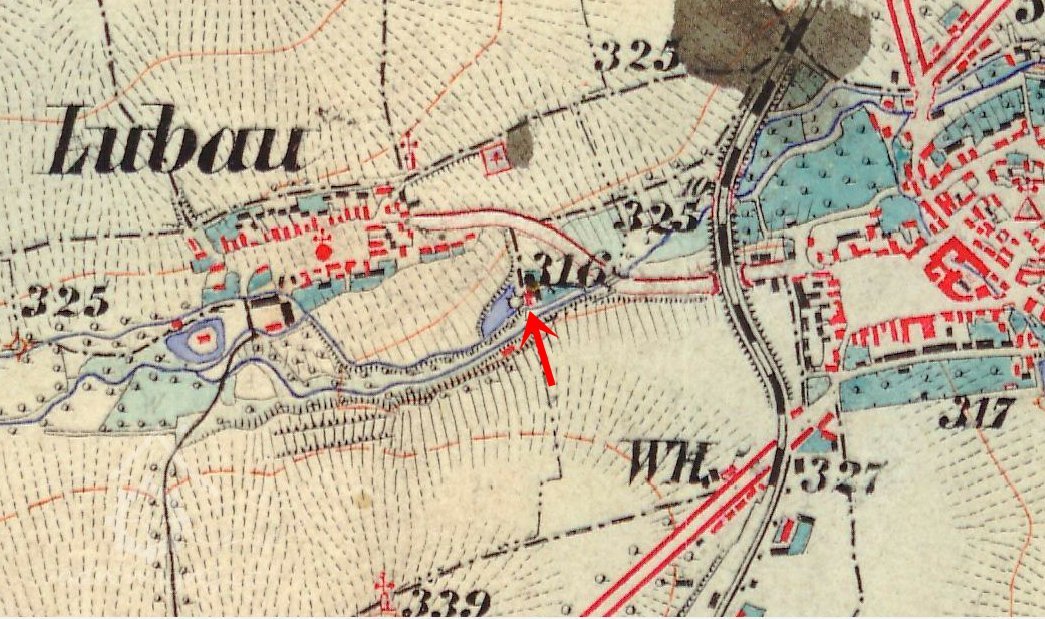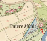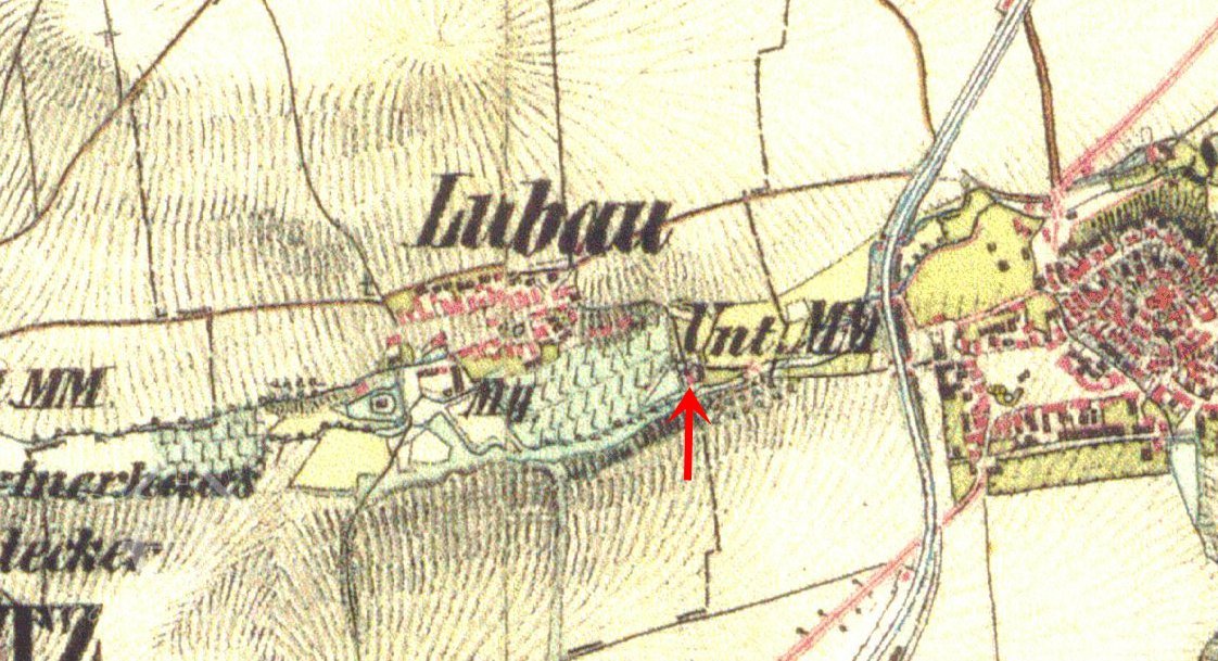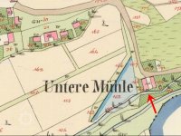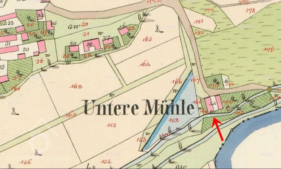 Mlýn se nacházel asi 530 m východně od bývalé hlubanské tvrze.