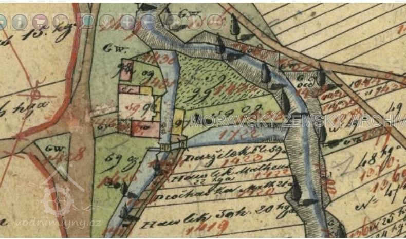 Dle archivních map www.cuzk.cz vedl k mlýnu náhon, který začínal ve středu obce.