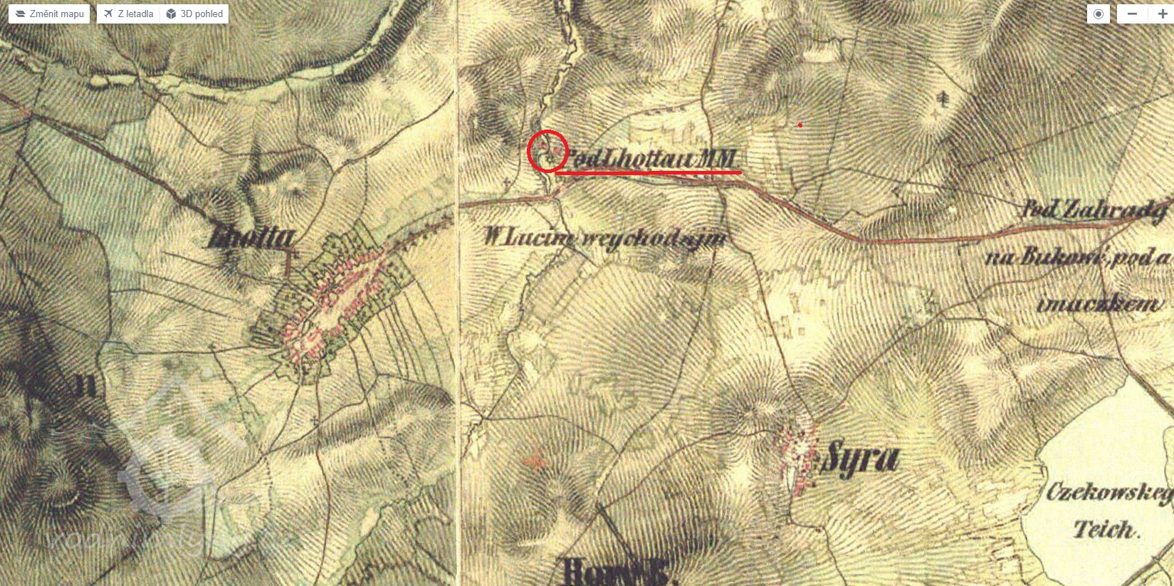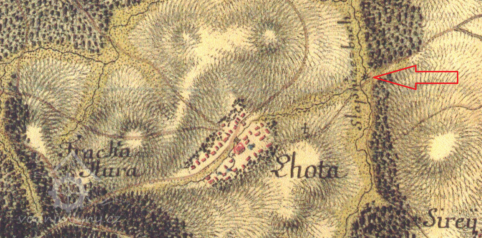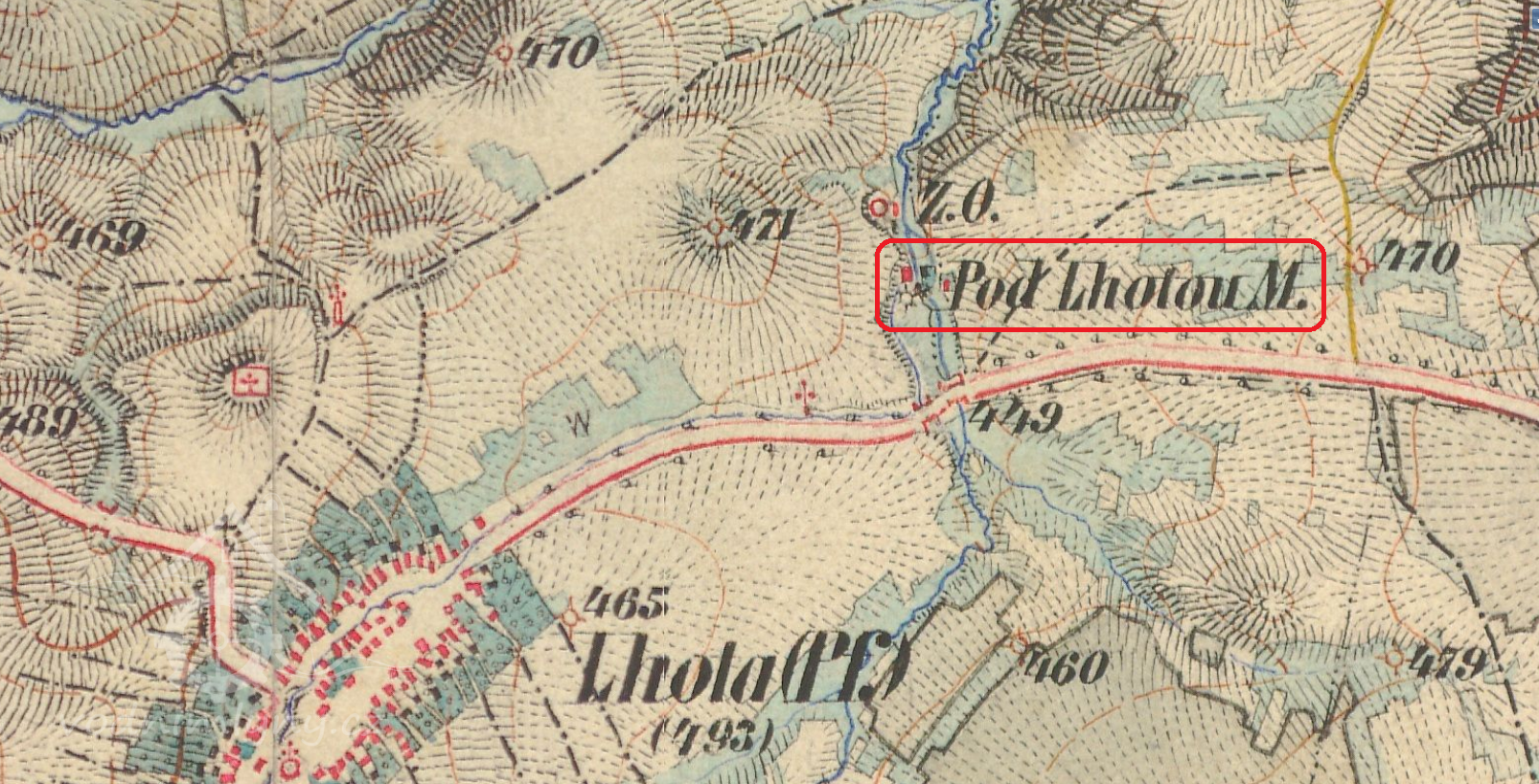1,6 km sv od kostela sv. Filipa a Jakuba ve Lhotě pod Radčem