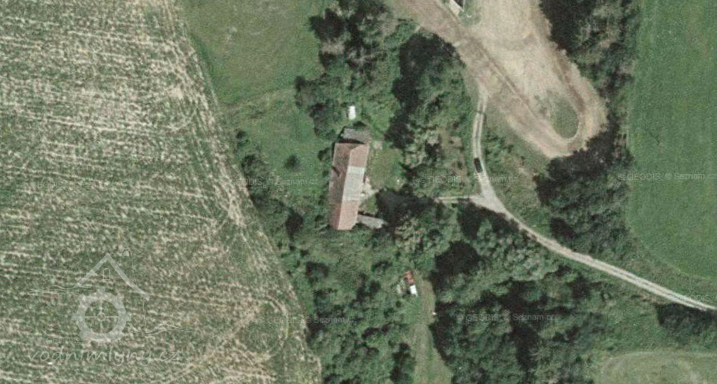 Zaniklý mlýn při jižním okraji jinínského motokrosového areálu.