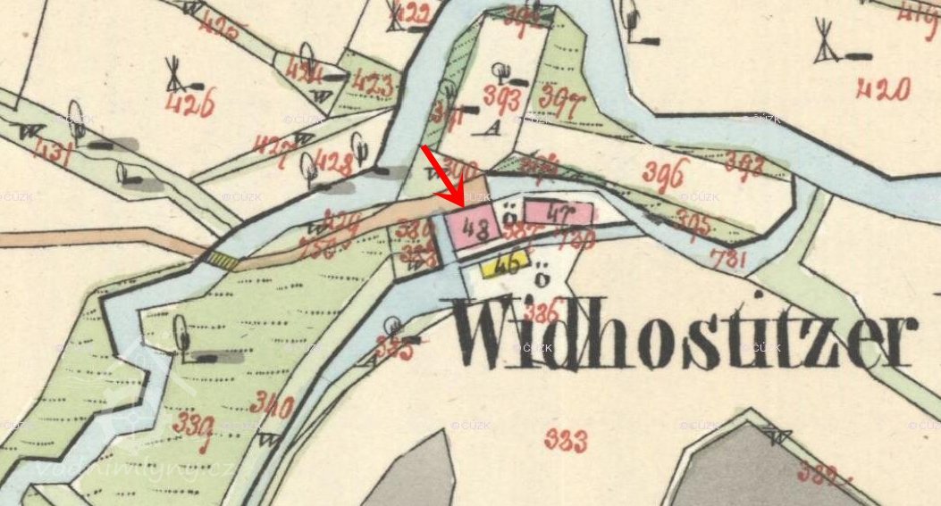 K roku 1756 se ve Vidhosticích uvádí rybník, chmelnice, mlýn.