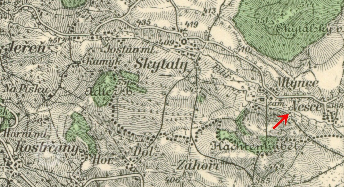 Zaniklý mlýn u obce Mlýnce (Vroutek).