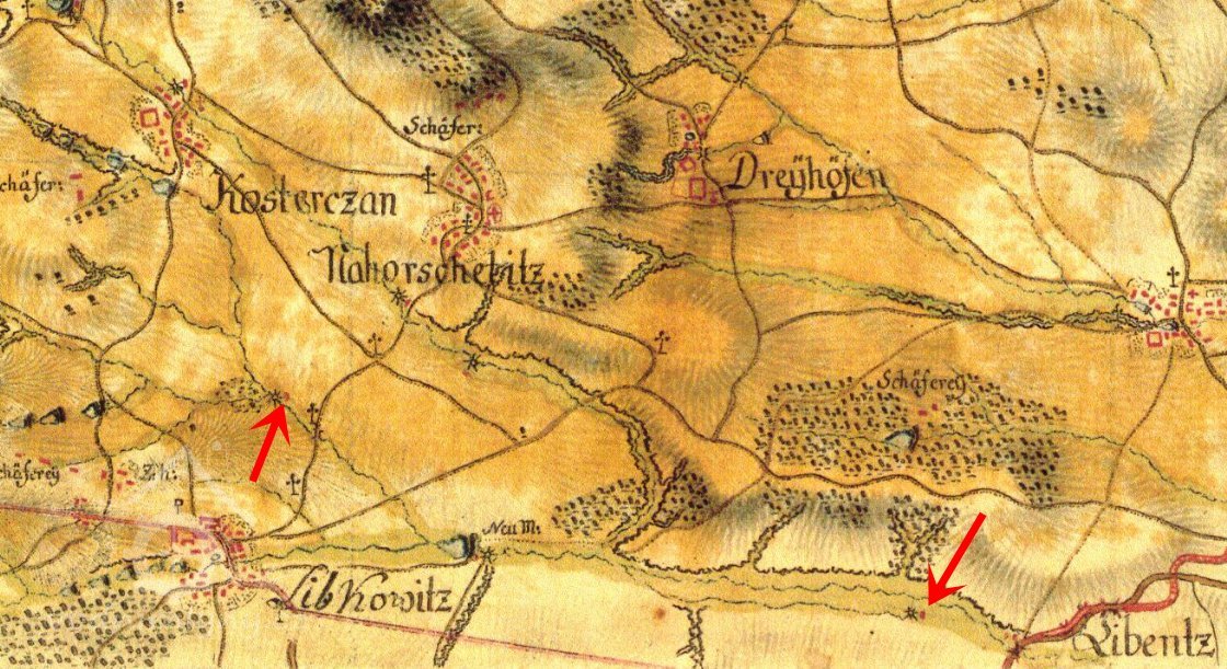 1833-1874 Jan Rippl, 1833 nechal zhotovit nad horním polem pískovcovou sochu Nejsv. Trojice s olejovým obrázkem P. Marie a zavázal své pomníky něj pečovat.
