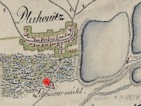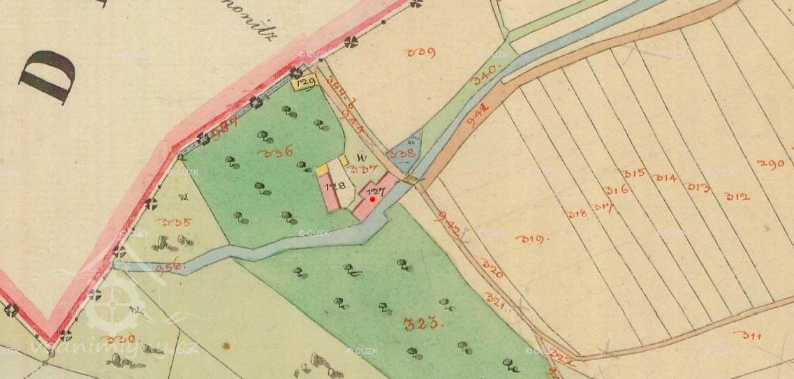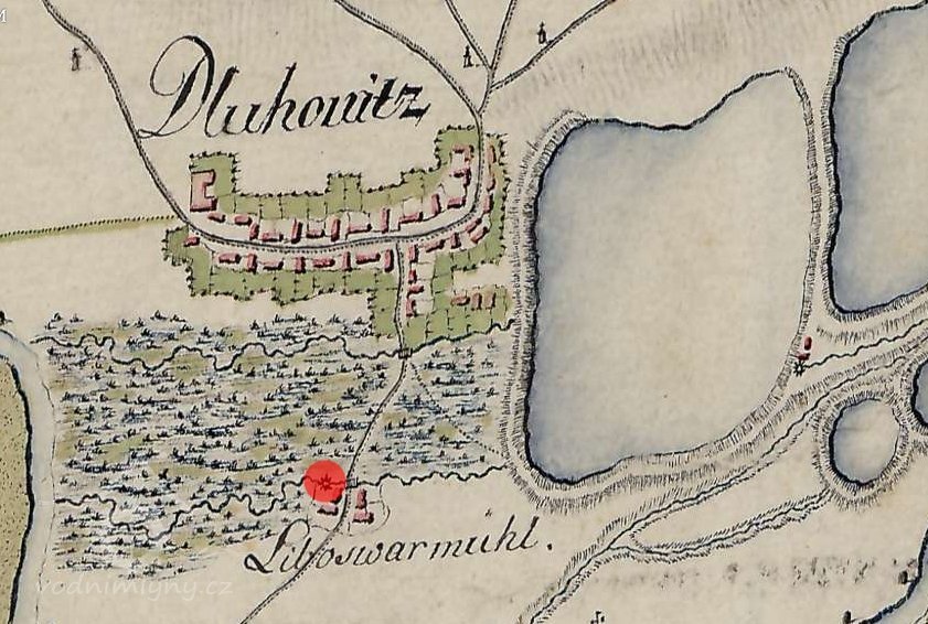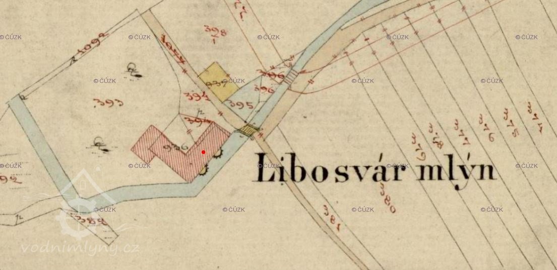 Mlýn, který založil v roce 1719 Jiří Libosvárský a byl nazván po něm, ležel po hrází na výtoku z již zaniklého Hrubého rybníka. Byl prý dřevěný a teprve mlynář Špaček vystavěl jej z kamene.