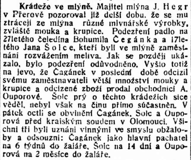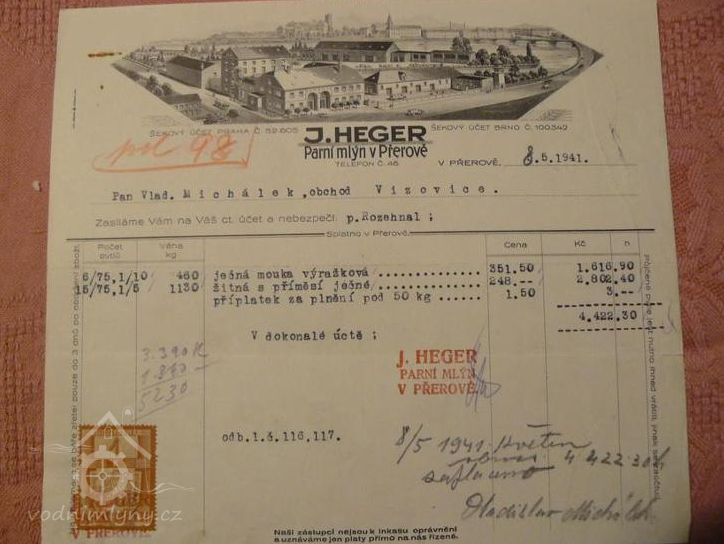 Od roku 1862 byla k mlýnu přistavěna nová pekárna. Mlýn pak vlastnili mlynáři Kulka, Doležel, Dvořák, Ignác a Julius Hegerovi.