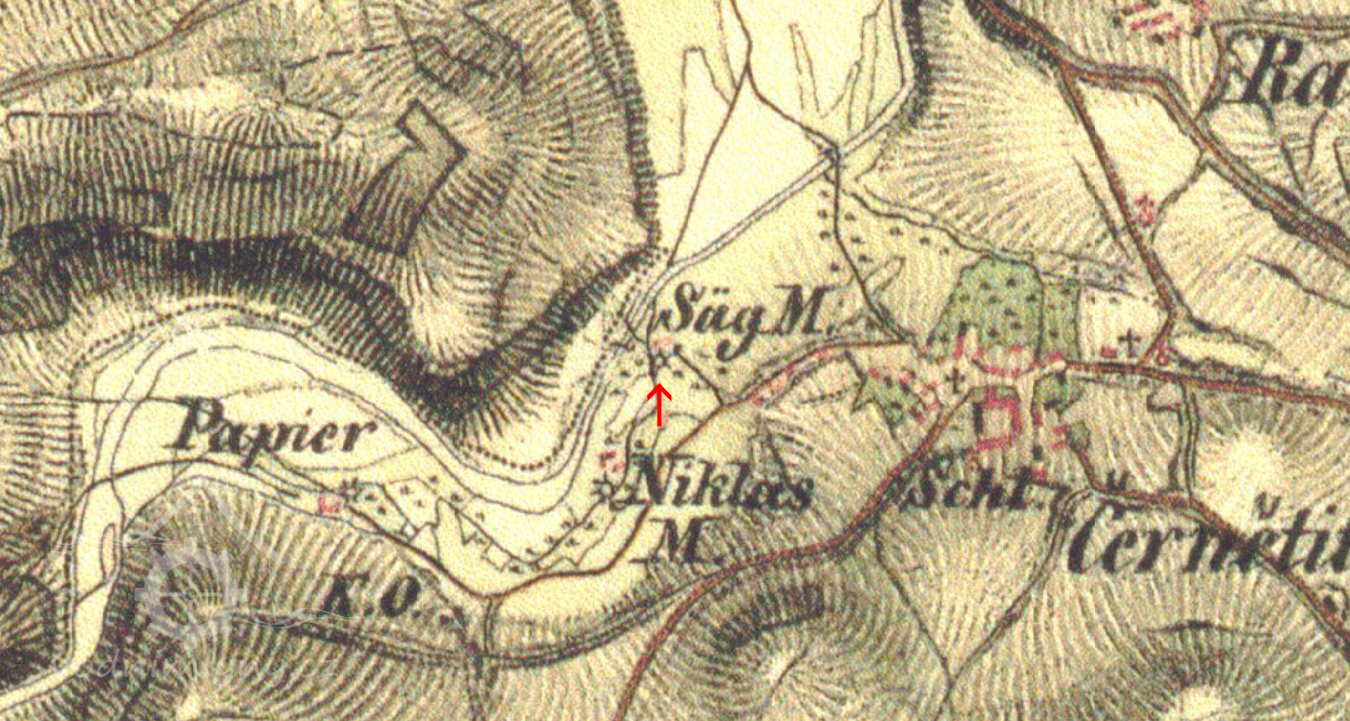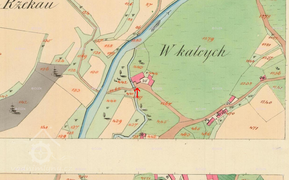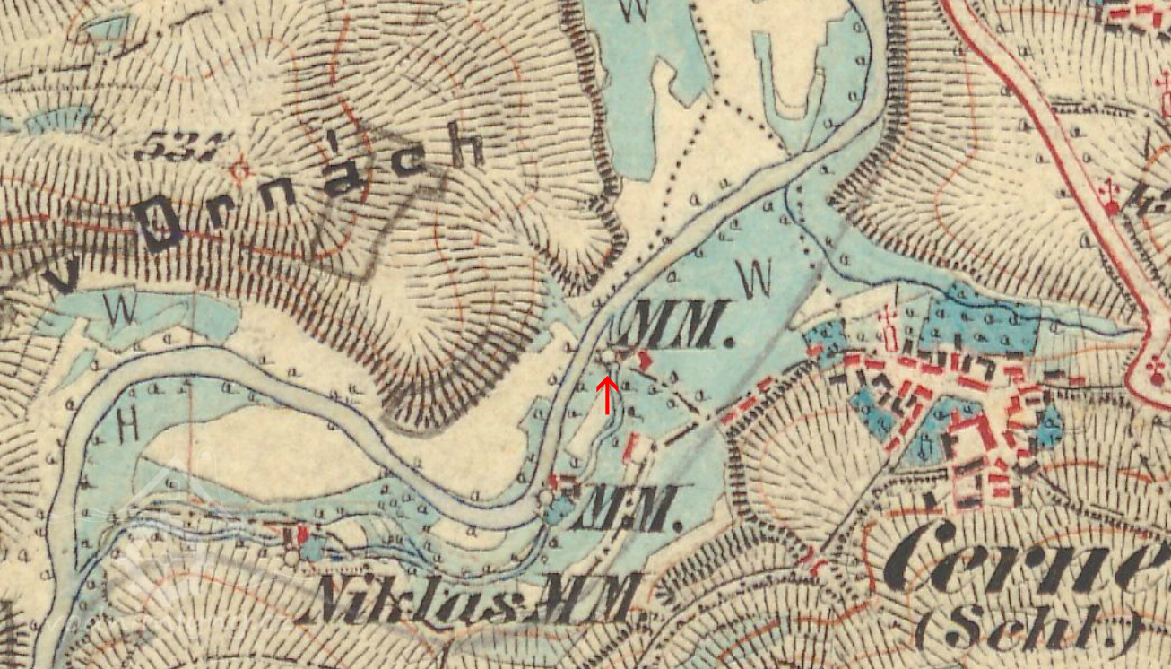 Mlýn ležel na společném náhonu s výše položenými mlýny Jihodol a Niklasovým mlýnem.