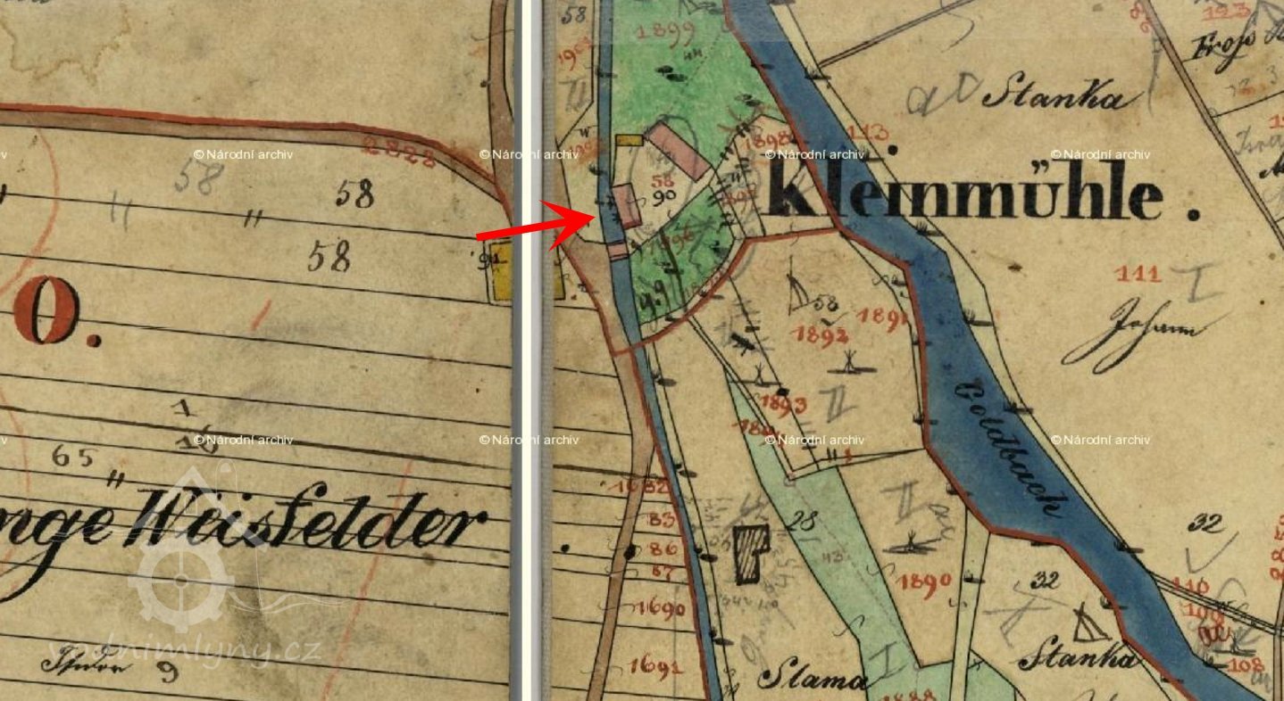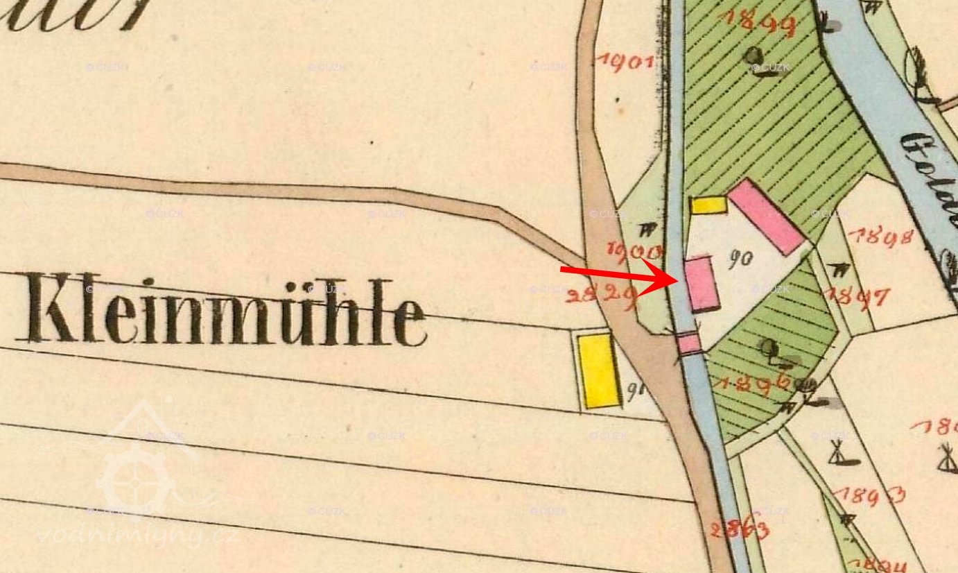 Klein Mühle byla tehdy poměrně veliká hospodářská usedlost. Vedle prosté jednopatrové budovy vlastního mlýna byla součástí statku i sušárna chmele, kterou Vladimír Borč zpočátku využíval, dále sýpka na obilí, maštal, kde měli Borčovi dva páry koní, chlév pro dobytek se čtyřmi kravami a pěti ovcemi a byly tu také chlívky pro prasata – zděné budky. Bylo jich vedle sebe asi čtyři nebo pět. Vpředu nad prasečími chlívky stál rozměrný dřevěný holubník. „Mladší bratr tam jeden čas holuby skutečně choval. Úplně vzadu byla kůlna s cirkulárkou na dřevo a uhlí. K mlýnu patřil i obrovský klenutý sklep, kde jsme měli uloženy brambory, řepu a zvlášť také jablka. Do sklepa se chodilo po schodech. Právě ten sklep se před dvěma lety propadl. Dovnitř do mlýna a obytných prostor se vcházelo ze dvora.