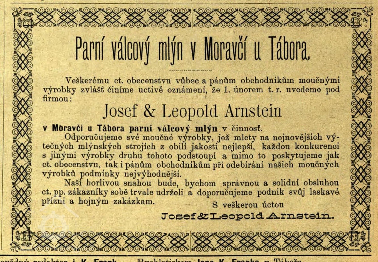 Teprve po letech byl mlýn pronajat a konečně r. 1900 prodán bratřím Antonínu a Emanuelovi Benešovým z Pravětic. Onen r. 1902 knihuje mlýn sám a r. 1905 postupuje polovici své manželce, Marii.