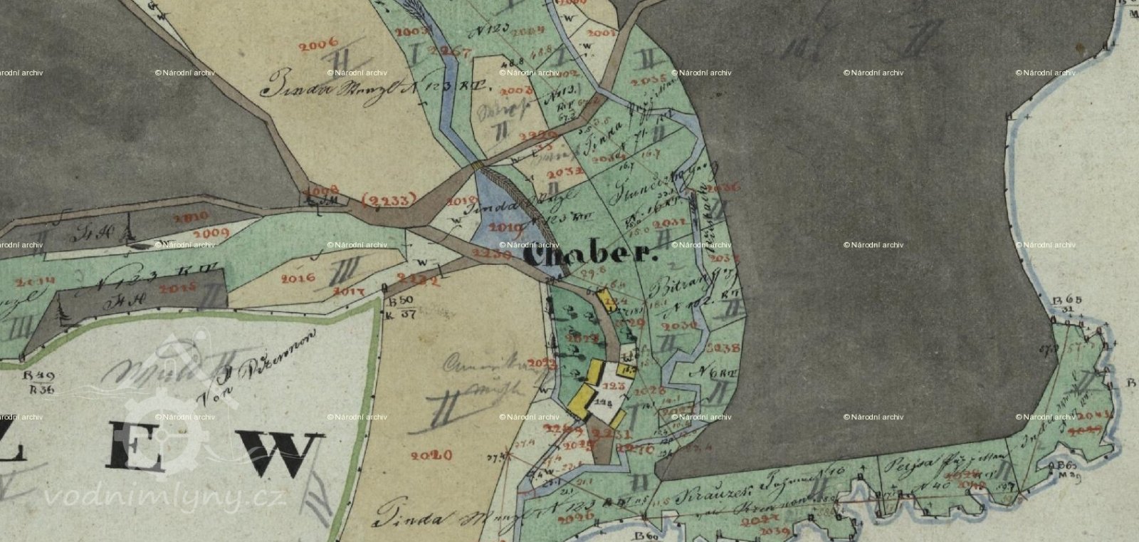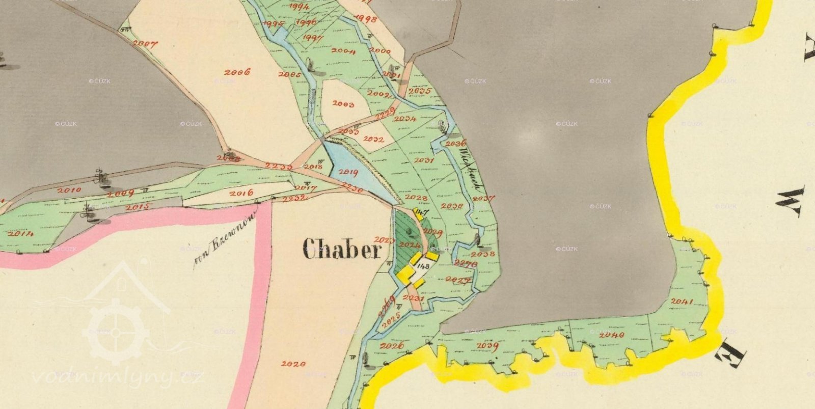 R. 1654 měl Adam Chabr na tomto mlýně 6 str. polí. Po něm tu byl syn Jan, maje r. 1713 jen 5 str., polí a luk na 1 vůz sena a ½ vozu otavy. Z řemesla roční výtěžek dle tereziánského katastru byl 15 zl.