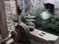 Při vnější prohlídce mlýna je vidět, že v mlýně byla i turbína, ale nejvíce zaujme torzo pily na pohon vodním kolem. Dřevěné části katru jsou ještě zachovalé.
