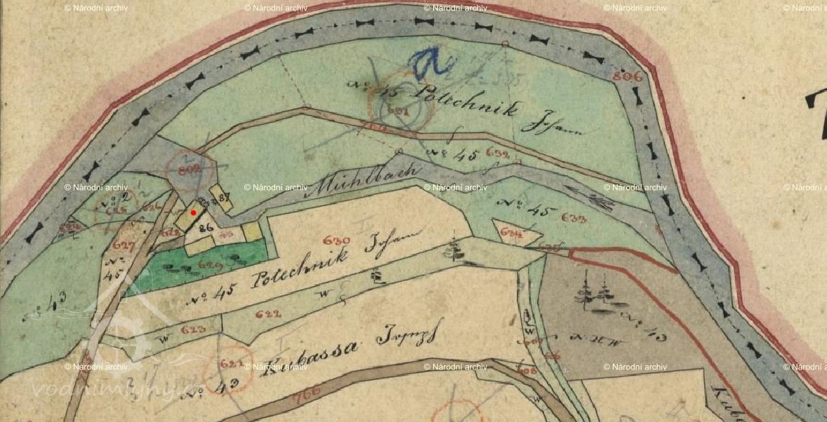 Indikační skica, výřez, 1824 - 1843, © viz archivnimapy.cuzk.cz