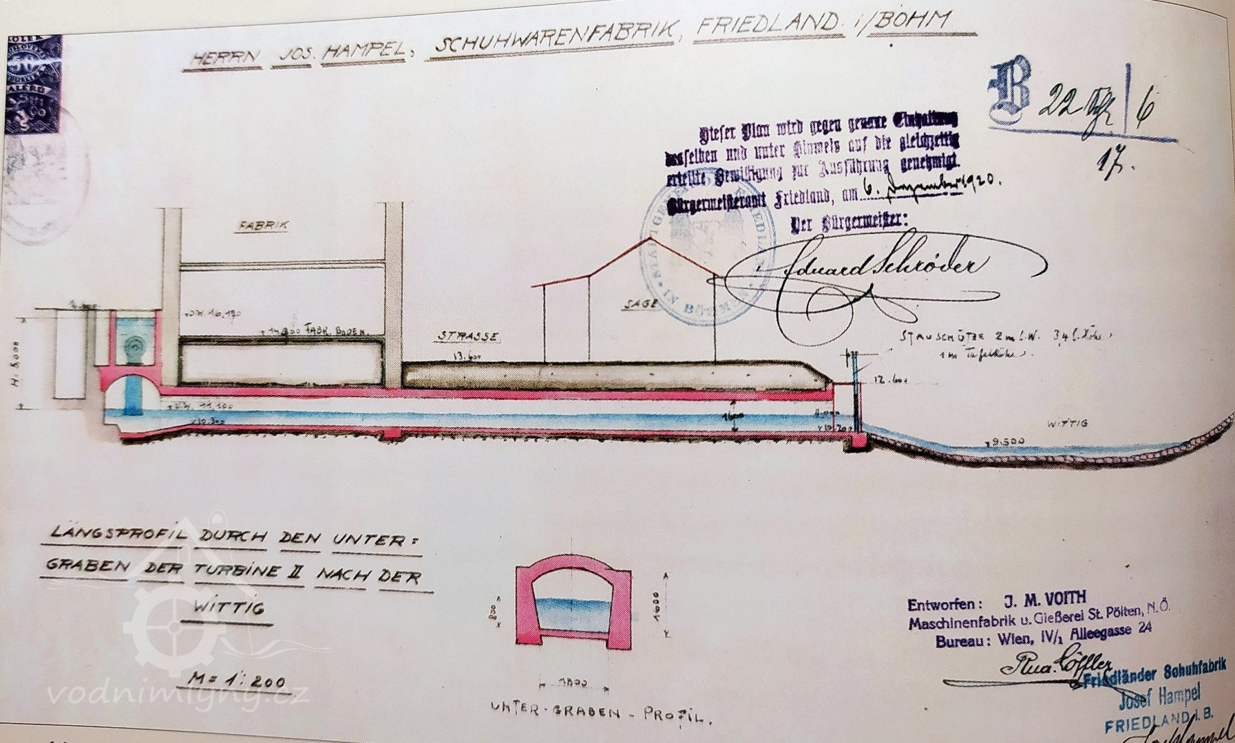 Popis1913 Karel Brergmann žádal o povolení výměny vodních kola za dvojčitou Francisovu turbínu o výkonu 64,5 HP