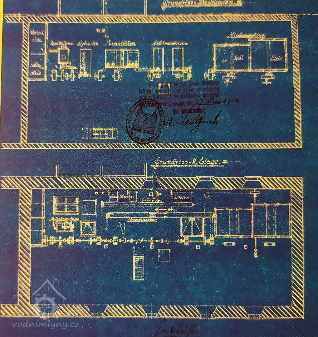 1913: namísto pův. mlýnských složení, 4-6 hranolových vysévačů a 2 šrotovacích kamenných složení