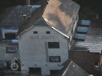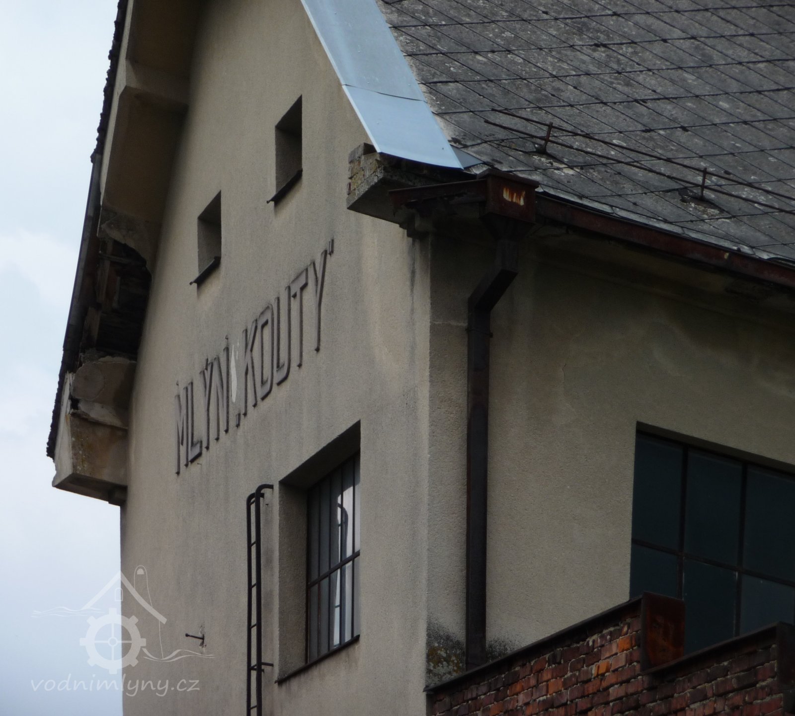 Na průčelí mlýna je nápis "MLÝN KOUTY"