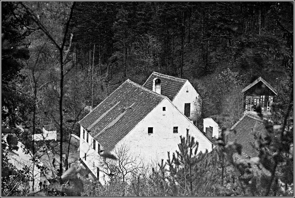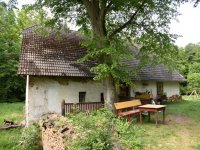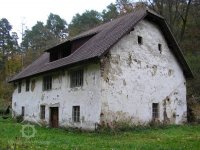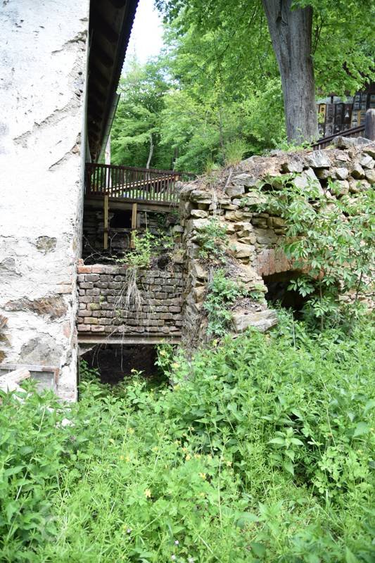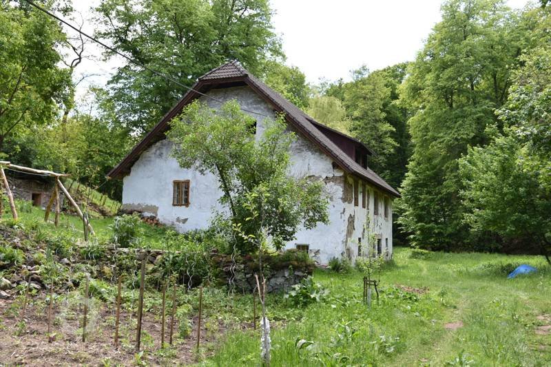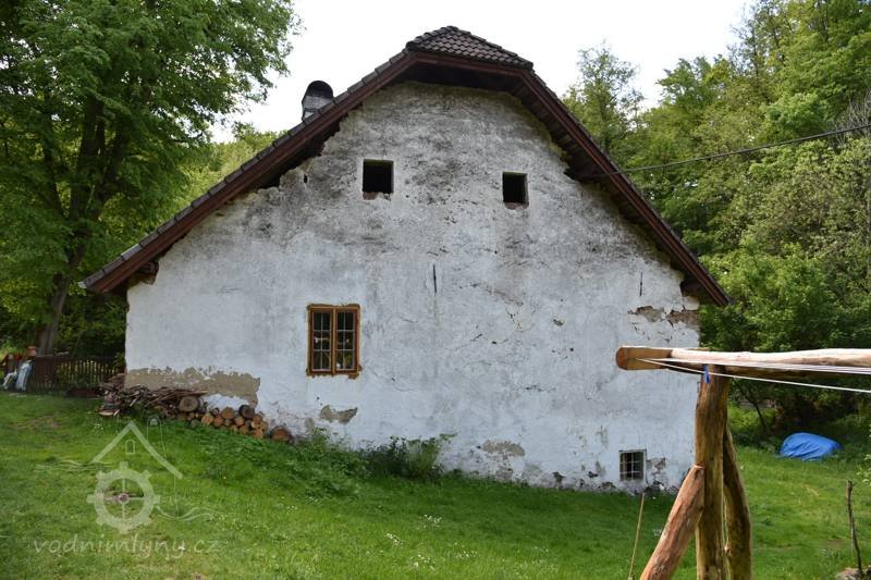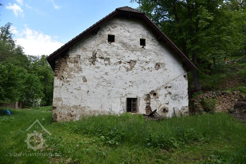 Zděný mlýn s mlýnicí pod jednou střechou.