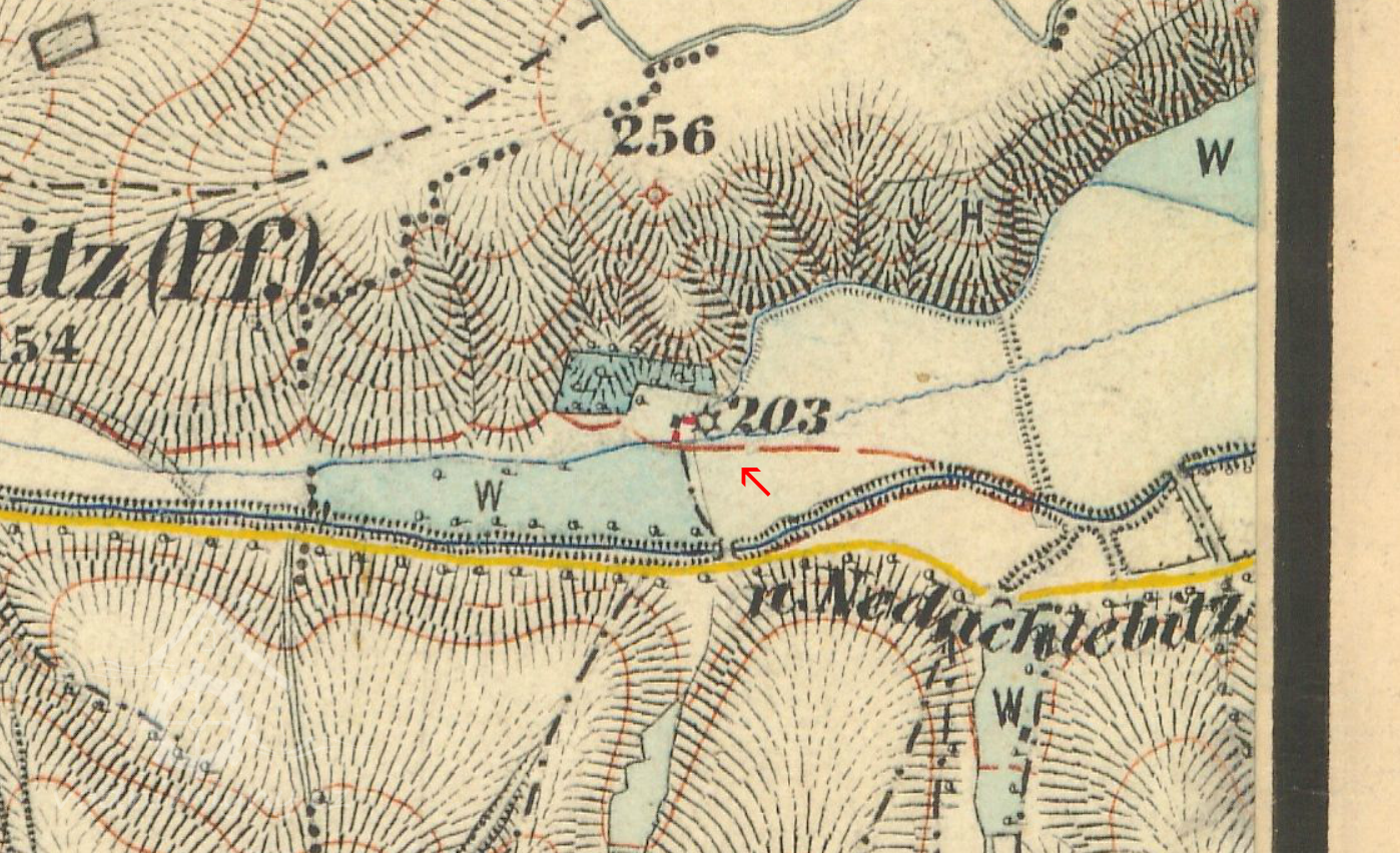 PopisV roce 1930 mlýn pohánělo 1 kolo na svrchní vodu, průtok 0.200 m3/s, spád 5 m, výkon 8.8 HP.(LR)