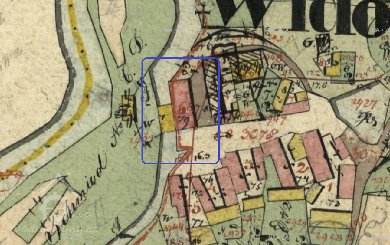 Vidov 6, J. Schmidt, mlýn a elektrárna, 1 turbína Francis, průtok 2 m3/s, spád 2,2m, výkon 44 k. s.