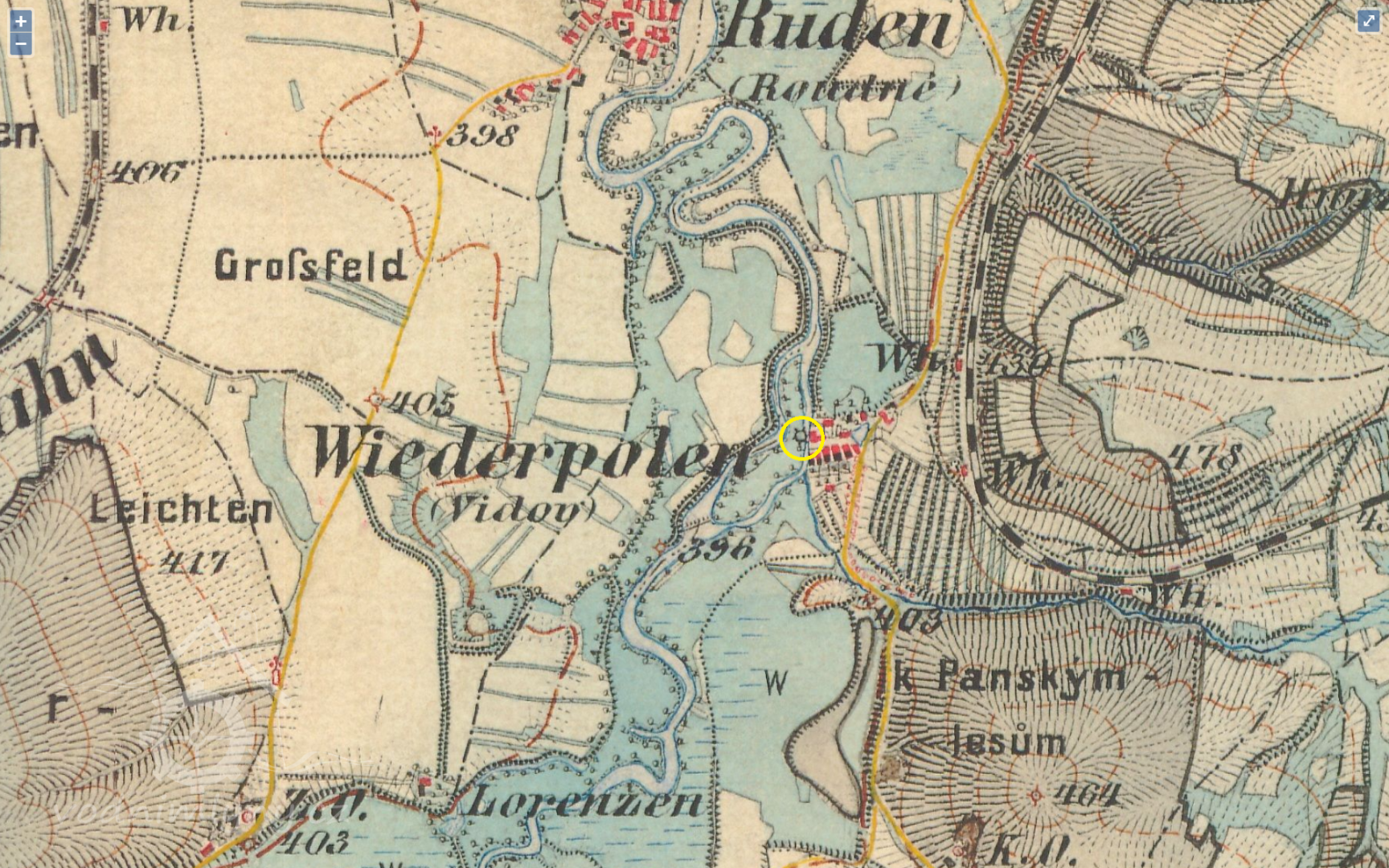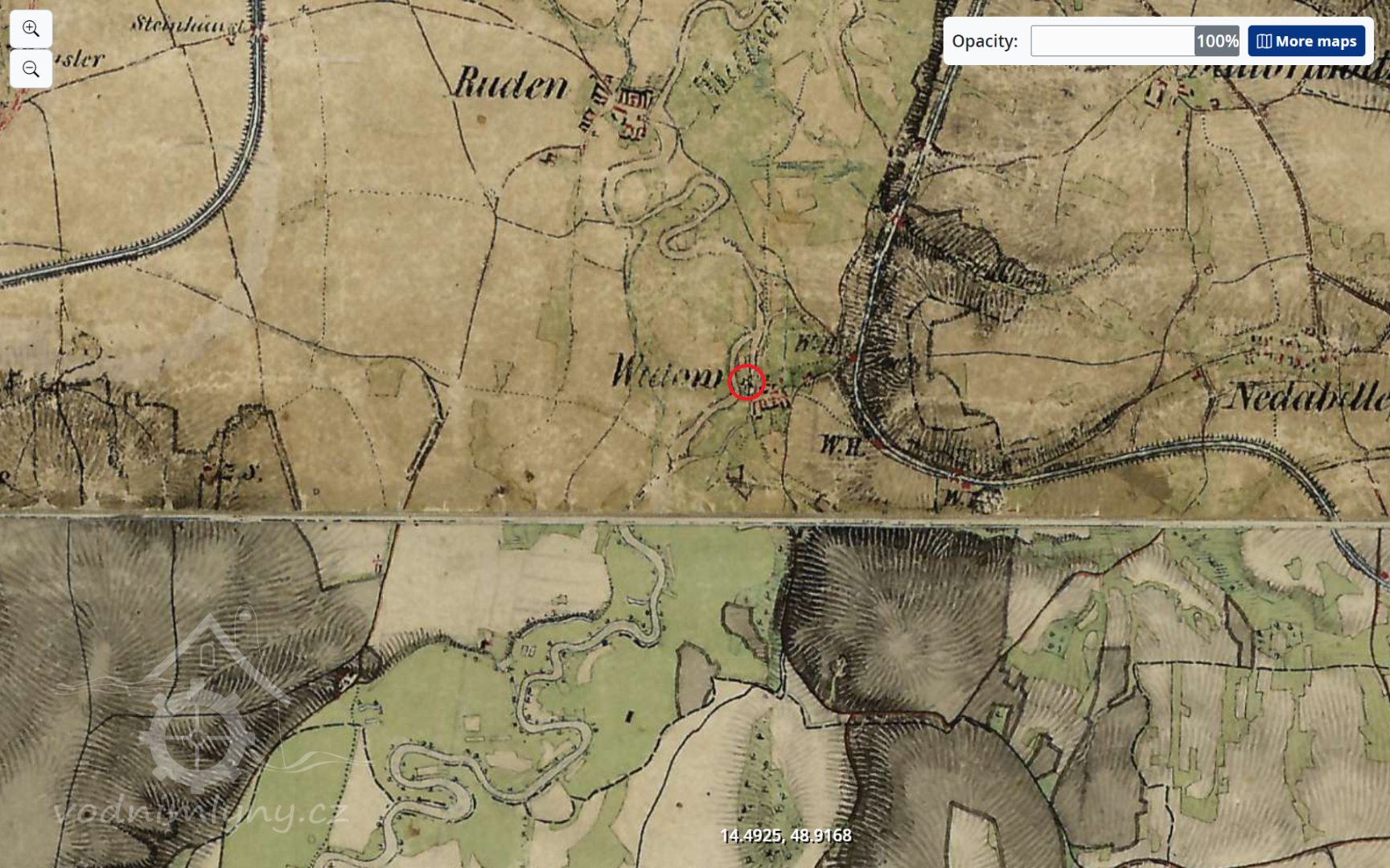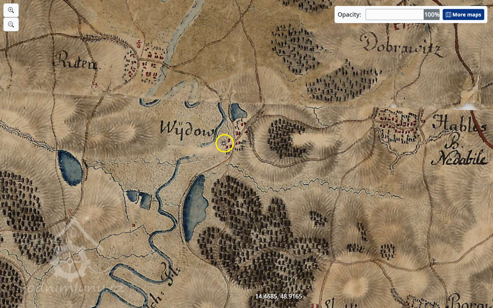 1651 Soupis poddaných podle víry: mlynář Martin (62 let), manželka Veronika (27), děvka Mandelina (15), všichni svobodní katolíci