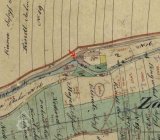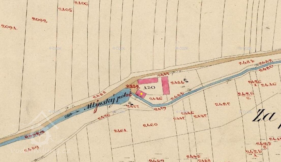 Horní plocha je krytá taškami. Branka napravo od vrat jde asi jen do poloviny je jich výšky. Nad ní je pruh zdivá rovněž sagmentově zaklenutý a zakončený římsou, shora zakrytý taškami, který přechází do zdivá pravá mlýnské budovy. Před ní terén výrazné stoupá a u pravého konce tohoto průčelí sahá pouze asi metr pod hlavní římsu. Střecha je mansardová valbová. Stěna je holá, ve středu má vstup prkennými dveřmi do patra. Nadpraží je segmentově zaklenuté. Vedle vstupu je malé obdélné dřevěné dvoukřídlé okénko rozdělené no čest tabulek. Z vnitřní strany je otvor zakryt mříží.