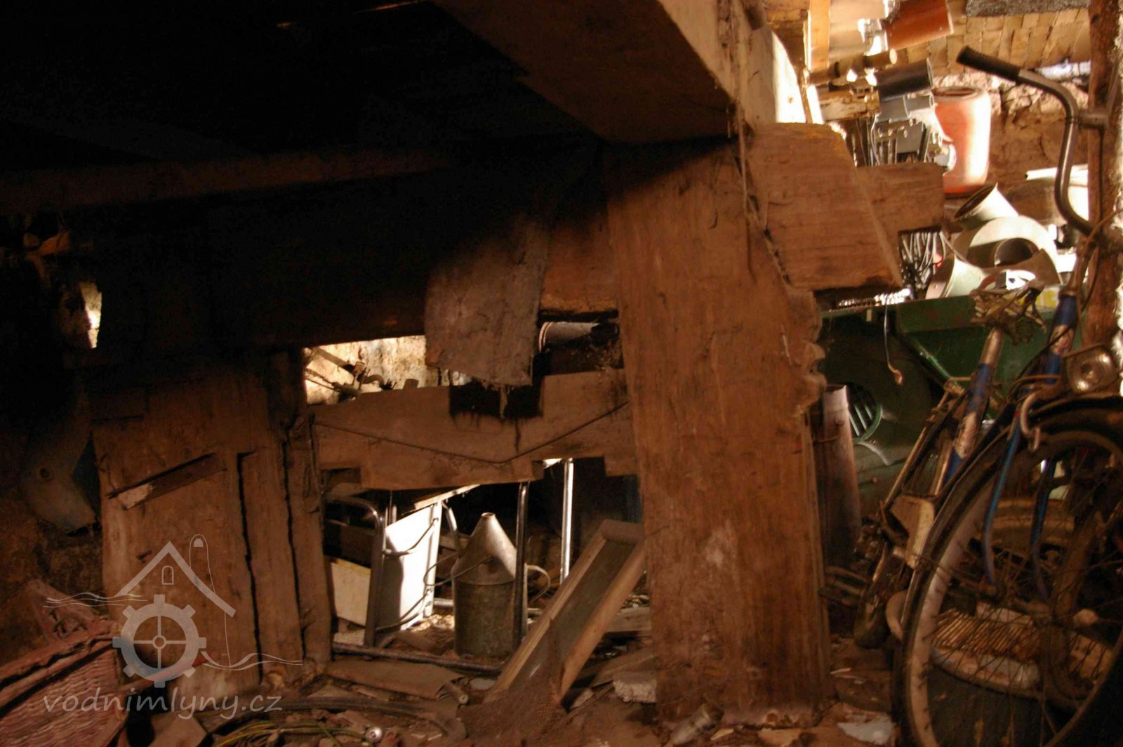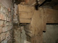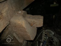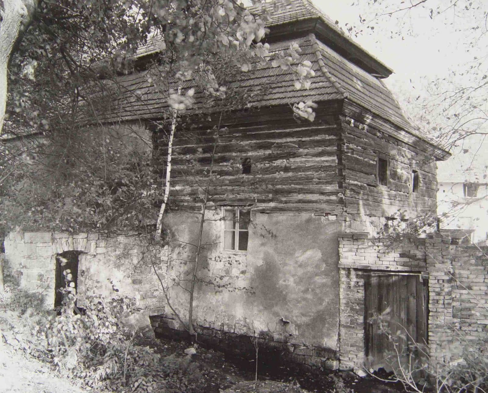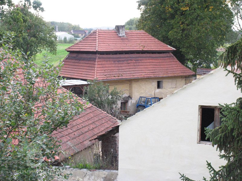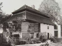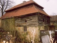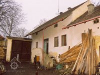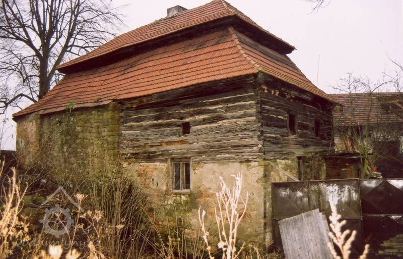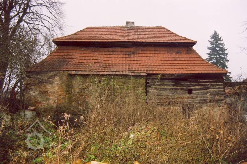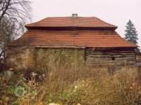 Podlahy v těchto místnostech jsou nové betonové. Stropy jsou ploché, nově omítané na lignopor upevněný na původních trámech. Do této budovy je ještě další vstup dřevěnými dvoukřídlými vraty na pravém konci dvorního průčelí. Za vraty je místnost probíhající přes celou šířku budovy, vybíhající na konci doleva o šířku předsíně. Podlaha je kamenná. Strop má rovněž nový heraklitový na původních trámech. Nad koncem místnosti jsou pouze stropní trámy skrz ně je vidět do krovu. Nad místnostmi v západní části budovy je dřevěná podlaha. Obvodové stěny západní části jsou v patře roubené z dřevěných trámů. Trámy jsou shnilé. Ze severní stěny vybíhají shnilé zbytky trámů do středu disposice. Mezi zdivém a trámy je velká trhlina. Rovněž zdivo |e místy poškozeno trhlinami. Krov je hanbalkový dřevěný, krytina je nová a drážkových tašek. Původní stropy místností jsou nízké. Všechny dveře a část oken jsou nové. Dveře jsou v ocelových zárubních.