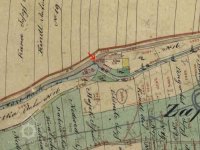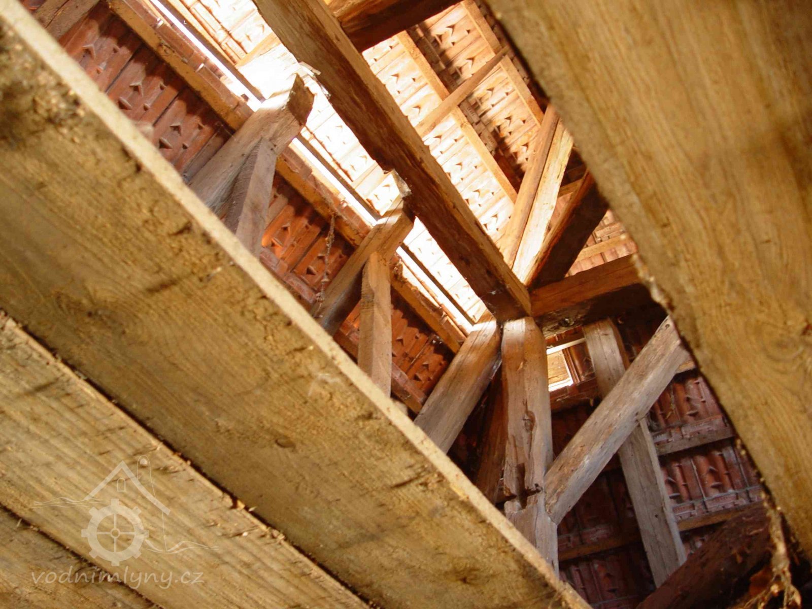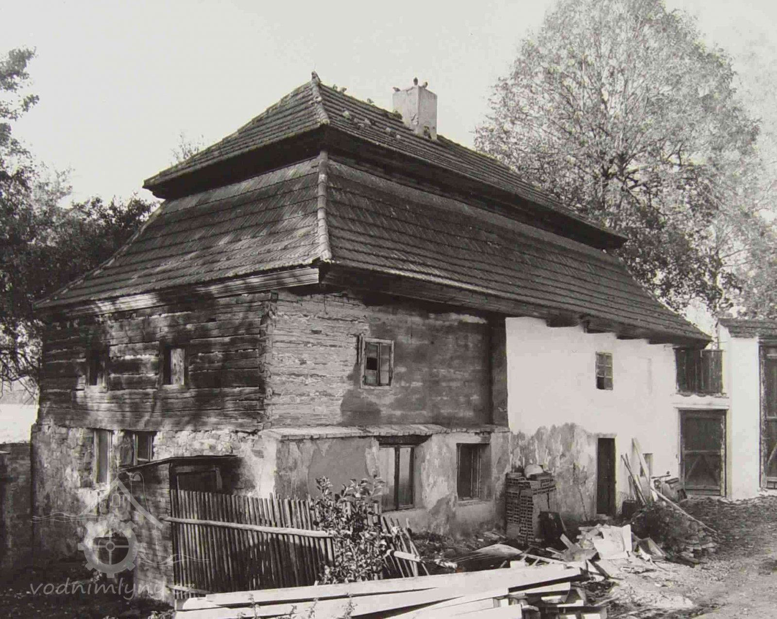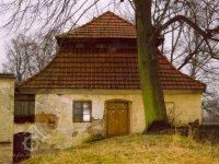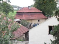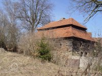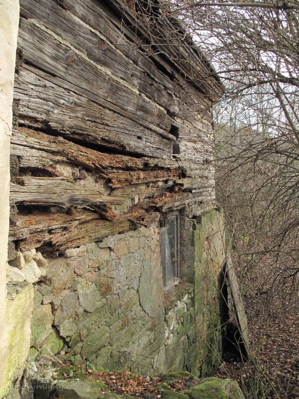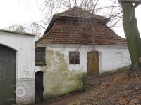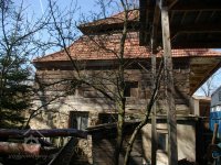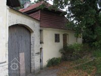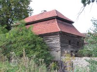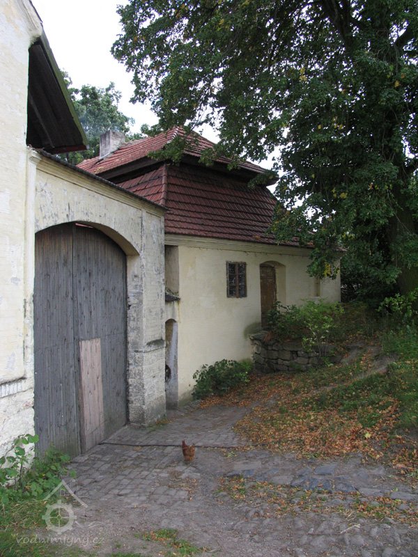 Budova no jih od brány byla původně mlýnskou budovou. Má přibližně obdélníkový půdorys. Západní část jo zděnu ze smíšeného zdiva, východní je ve spodní části až nad okna přízemí zděná, dále roubená dřevěná. Střecha je mansardová valbová, přesahující půdorys budovy na všechny strany. Do této budovy se vstupovalo novými dveřmi v ocelové zárubni v jejím severním průčelí ze dvora. Za dveřmi se vstupuje do malé předsíně s dlážděnou podlahou. Z předsíně jdou nové jednokřídlé dveře do obytné místnosti osvětlené dvěma malými rovněž novými dvoukřídlými dřevěnými okny.
