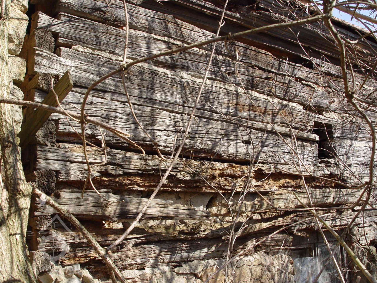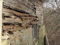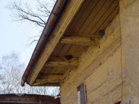 No pravé straně je spodní část průčelí zděná, omítaná s novým dvoukřídlým dřevěným zdvojeným oknem. Nad oknem až ke střeše pokračuje roubená část z dřevěných trámů. Tato strana budovy je v dezolátním stavu. Zdivo ujíždí a naklání se směrem ven z budovy. Dřevěná část je shnilá, dřevo je rovněž napadeno dřevokazným hmyzem.