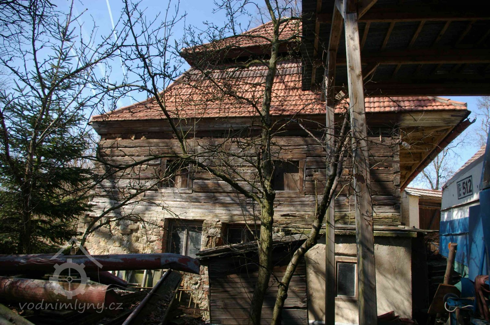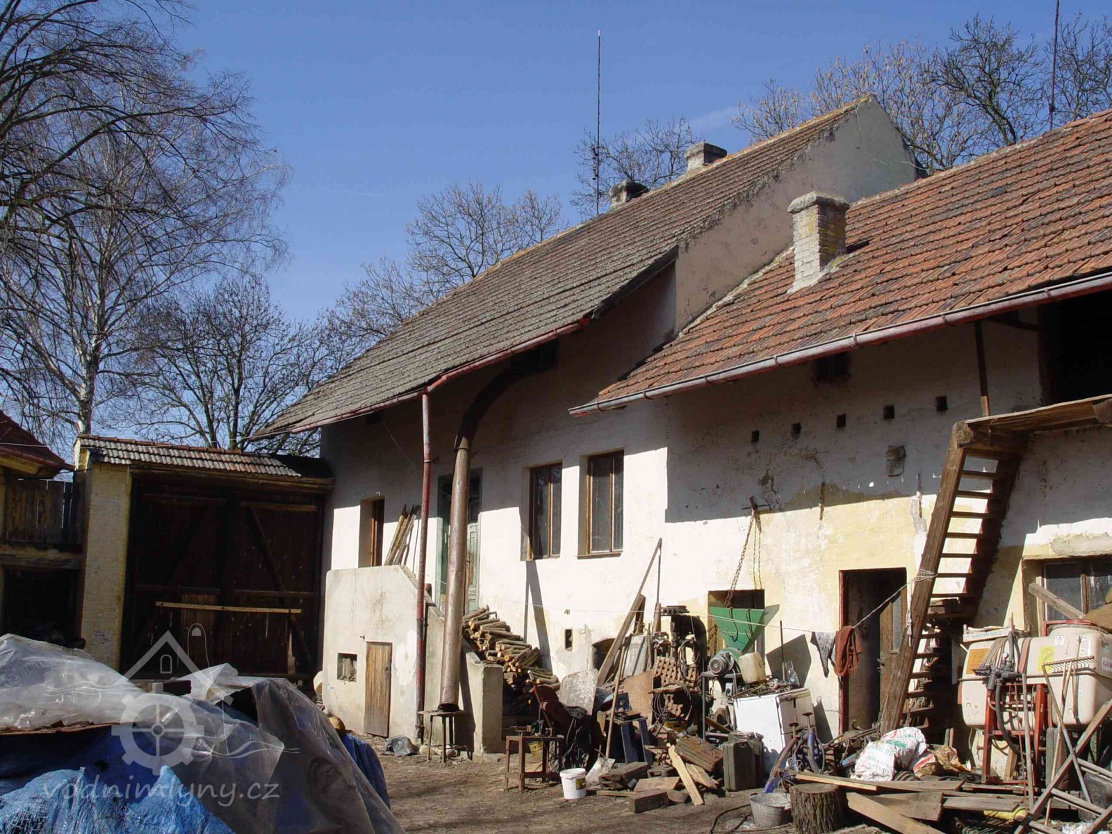 Z východu jdou do mlýnské budovy dva okenní otvory bez oken do roubené části v patře a do přízemí jedno nové dvoukřídlé okno. Dvorní průčelí druhé obytné budovy a hospodářské budovy k ní přilehající je rovněž holé, členěné pouze otvory. Střechy obou budov jsou sedlové, do dvora daleko přesahující. Pod střechou hospodářské budovy jsou ve zdivu otvory na trámy pravděpodobné od stříšky nad částí dvora. Do přízemí obytné budovy vedou tři okna, po levé straně od vstupních dveří jedno a napravo dvě. Jsou rovněž nová, dvoukřídlá. Do hospodářské části vedou pouze dvě okna po stranách vstupních dveří do první místnosti sleva. Pod střechou je přibližně uprostřed dále otvor do půdy. Západní štít hospodářské budovy je holý, pouze s novým trojdílným oknem do půdy.