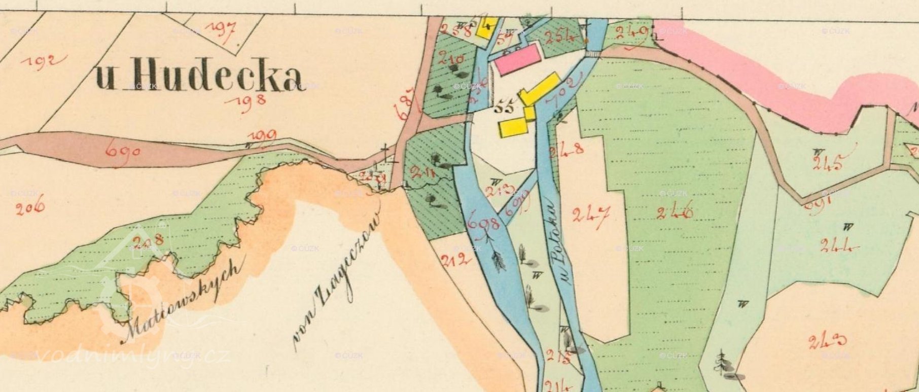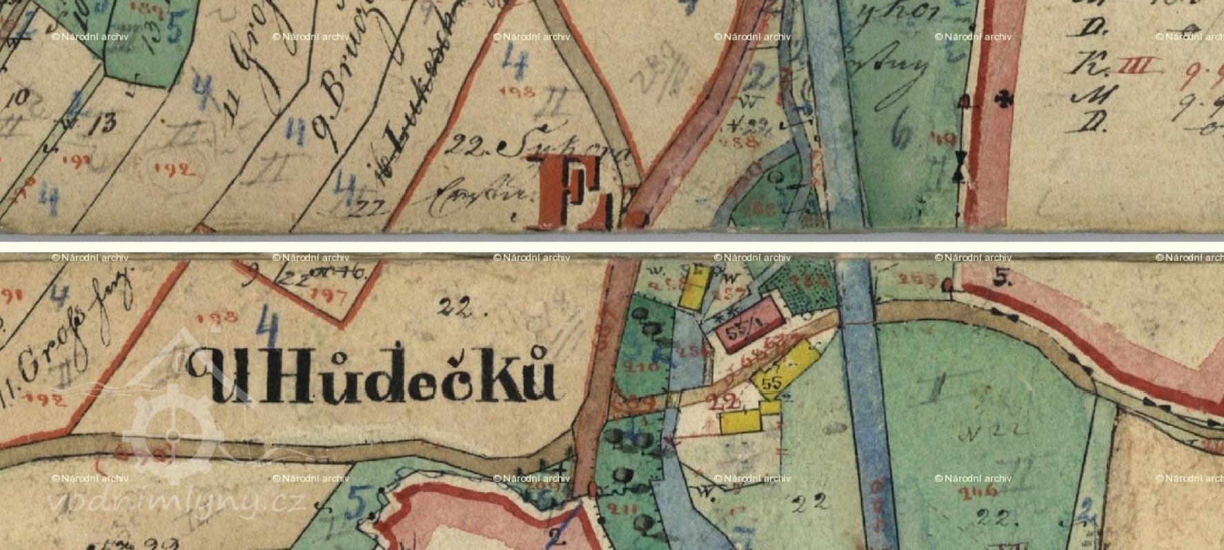 1651 Soupis poddaných podle víry: mlynář Tomáš Hudeček (36 let), manželka Mariána (22), tovaryš Vavřinec (25), všichni katolíci, pacholek Jakub Vlk (15), obrácený nekatolík, všichni selského stavu
