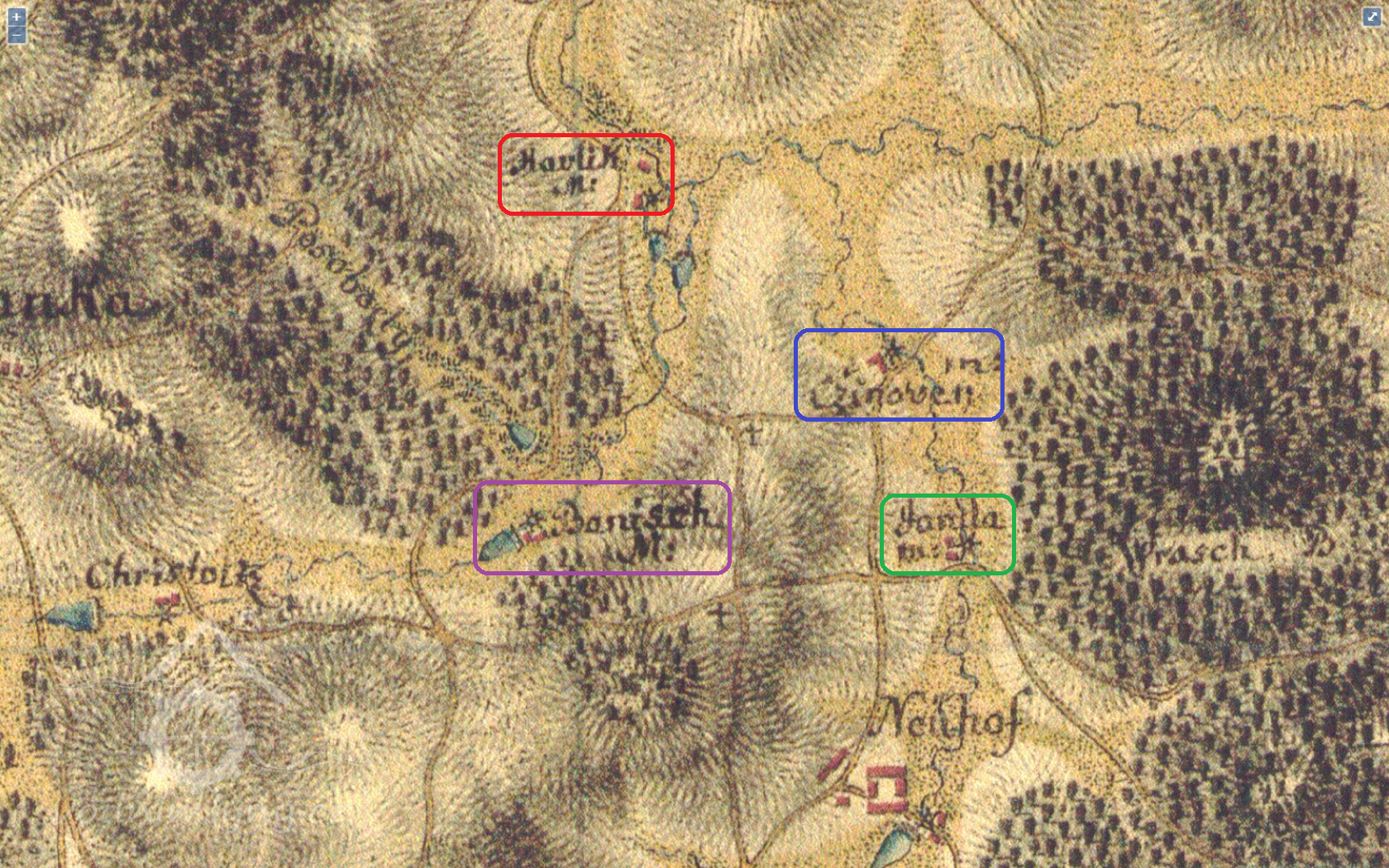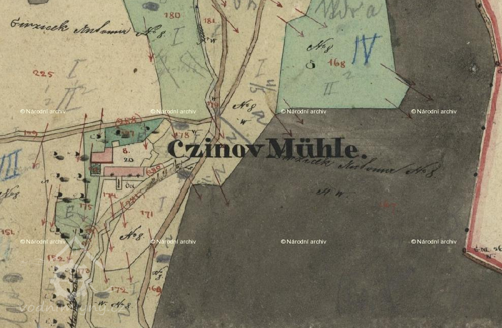 1654 Berní rula: Václav Linovec, mlejn s 1 kolem, 40 str. rolí, 6 potahů, 8 ks hov. dobytka, 5 ovcí, 4 prasata