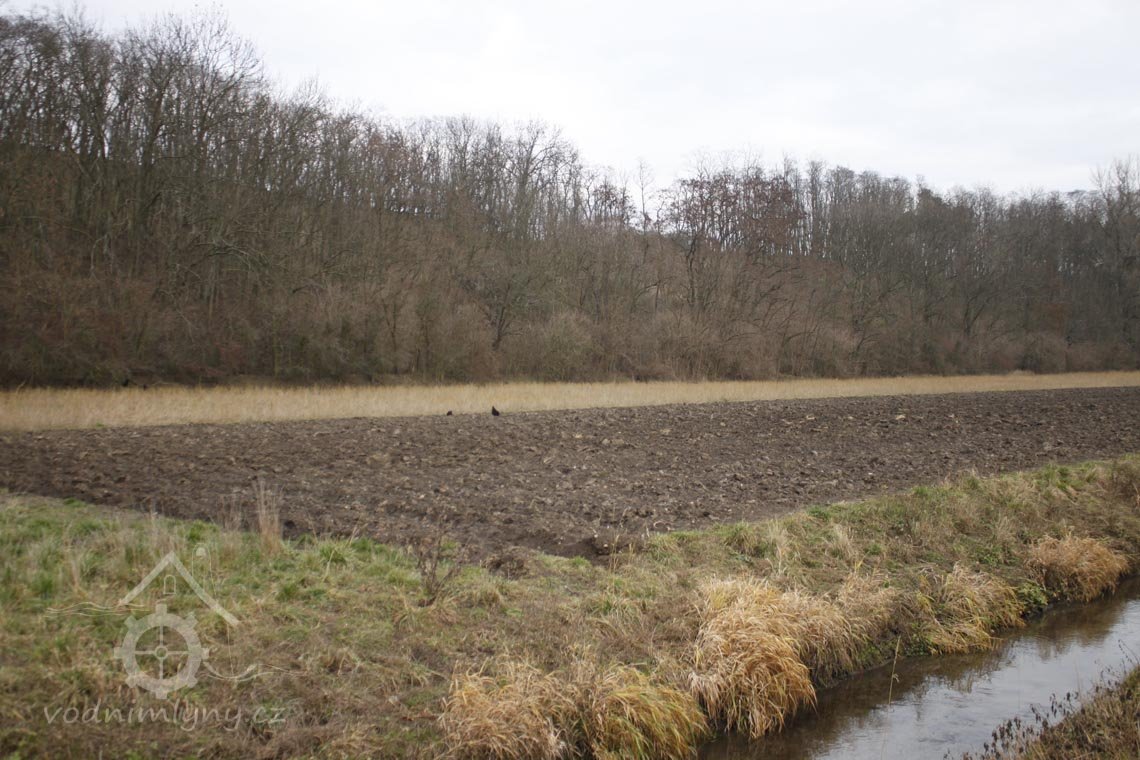 Jez a část náhonu zničena při regulaci potoka.