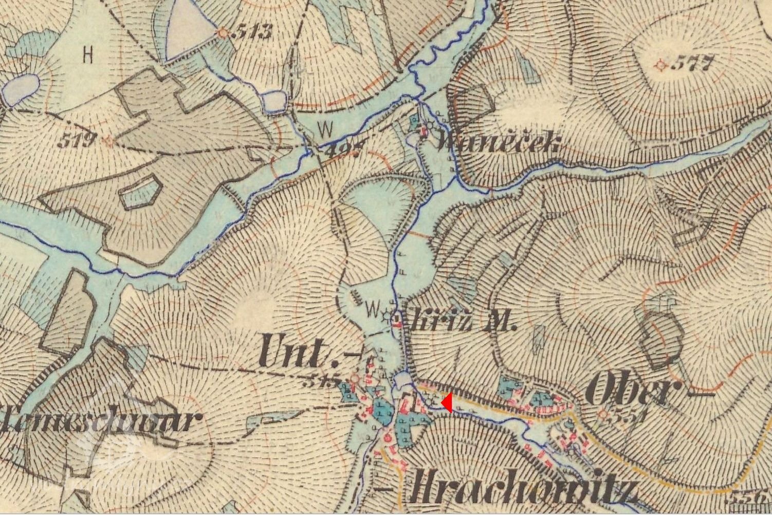 Vojtěch Steinnacher (*12.9.1802; +??) mlynář, syn Vojtěcha Steinnachra svobodného mlynáře z Horních Hrachovic č.p.11 a oo8.11.1825 Apolena roz. Mrázková z Ratibořských Hor č.p.36
