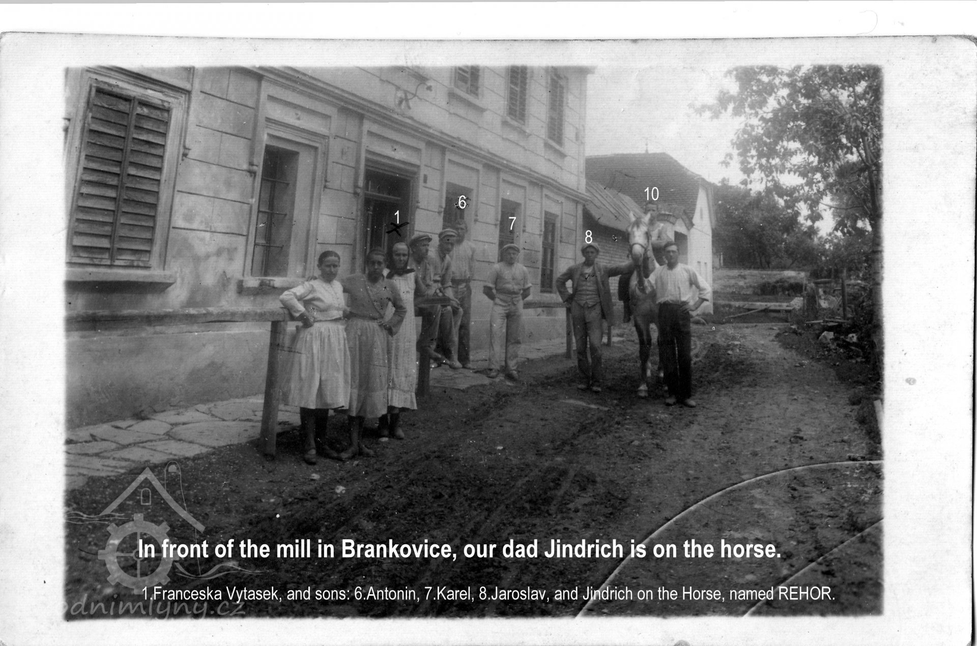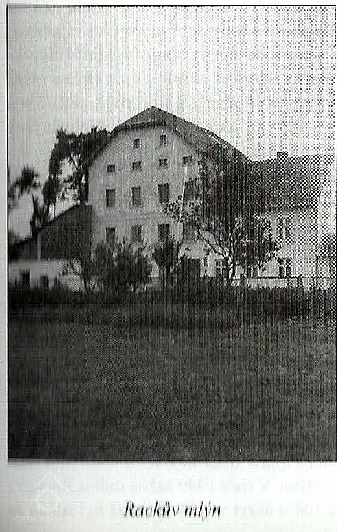 s. 7 - V obci také v té době (pozn. MŠr. - za první republiky) fungovaly dva mlýny, Pěnicův a Rackův mlýn. V Pěnicově mlýně probíhaly letní slavnosti a celé hospodářství bylo na vysoké úrovni. Avšak Pěnicův mlýn neunesl konkurenci zmodernizovaného Rackova mlýna, začal ztrácet zákazníky a během druhé světové války zanikl. Rackův nově přestavěný mlýn byl v celém okolí nejmodernější a dobře prosperující. Po roce 1948 však nastaly určité těžkosti a komplikace v otázce vedení mlýna a na počátku 50. let byl mlýn násilně zrušen.