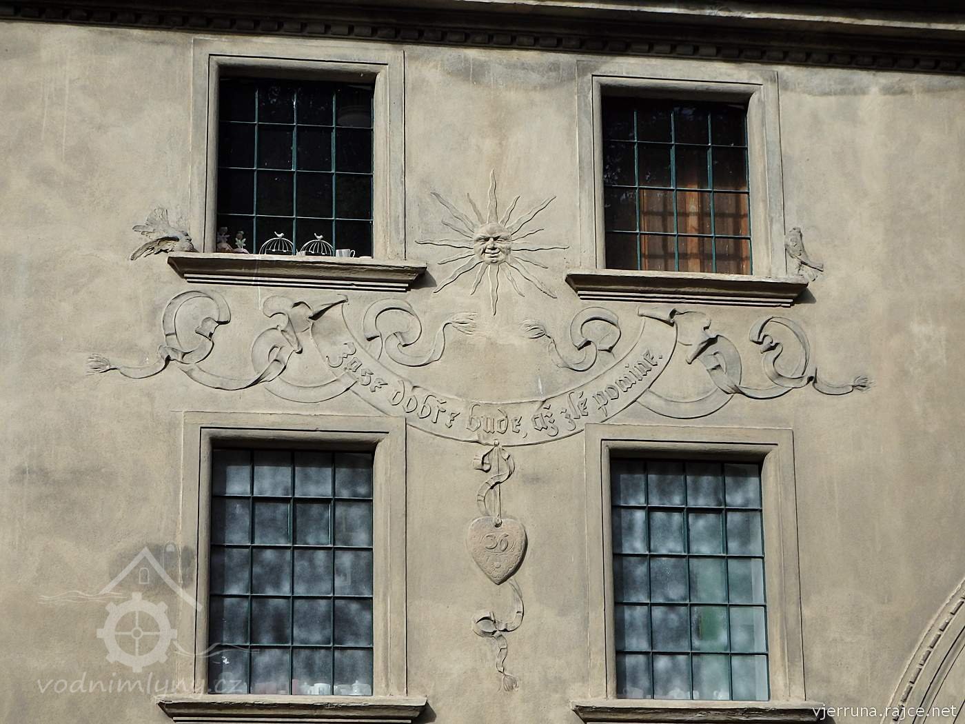 čelní fasáda, 10 2016, © Irena Blažková, (Prvky na obrázku: plastická omítková výzdoba fasád a štítů)
