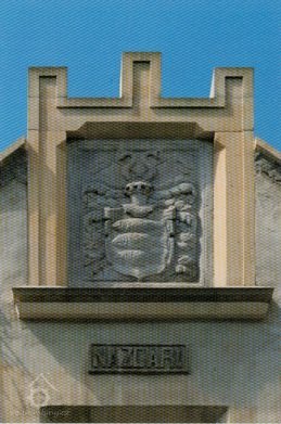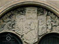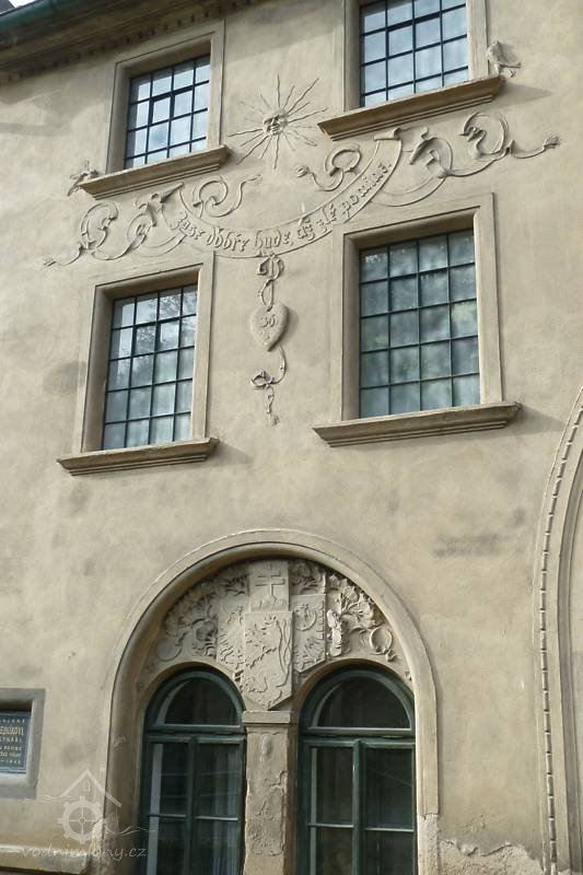Znak Zejdliců, 2011, © https://www.google.cz, (Prvky na obrázku: zdobený zděný štít, umělecké prvky (sochy, malby, reliéfy))