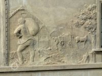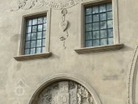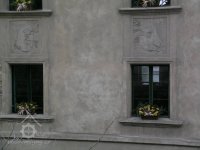 Zemské znaky nad sdruženým oknem, 2013, © Pavel Vychodil, (Prvky na obrázku: plastická omítková výzdoba fasád a štítů, umělecké prvky (sochy, malby, reliéfy))