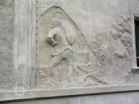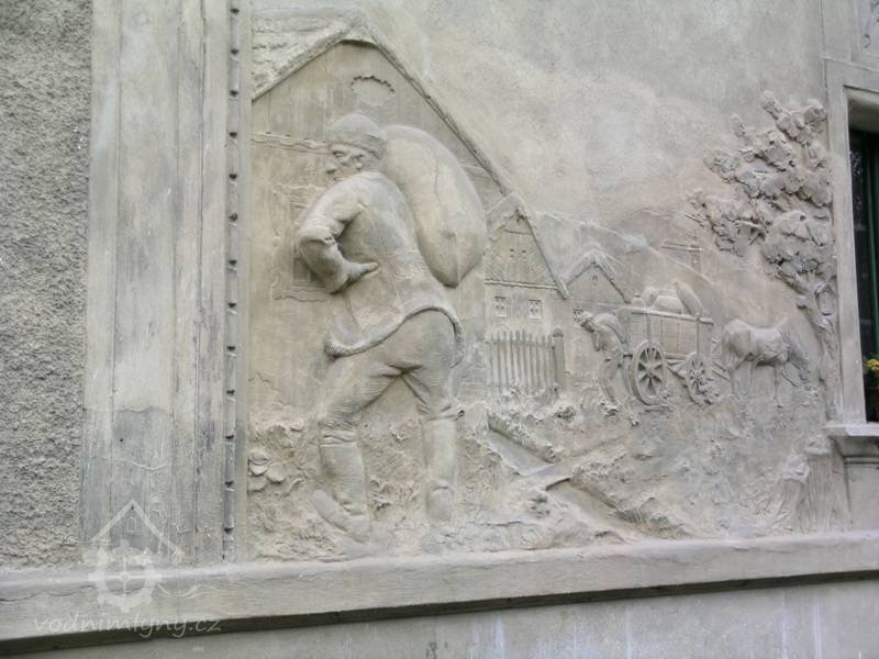 detail fasády, 10 2016, © Irena Blažková, (Prvky na obrázku: plastická omítková výzdoba fasád a štítů)