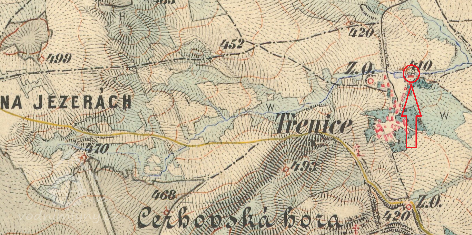 300 m severně od kapličky v Třenicích