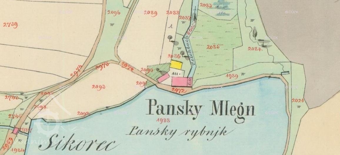 Mlýn takzvaný Panský s popisným číslem 15, leží pod Panským rybníkem.